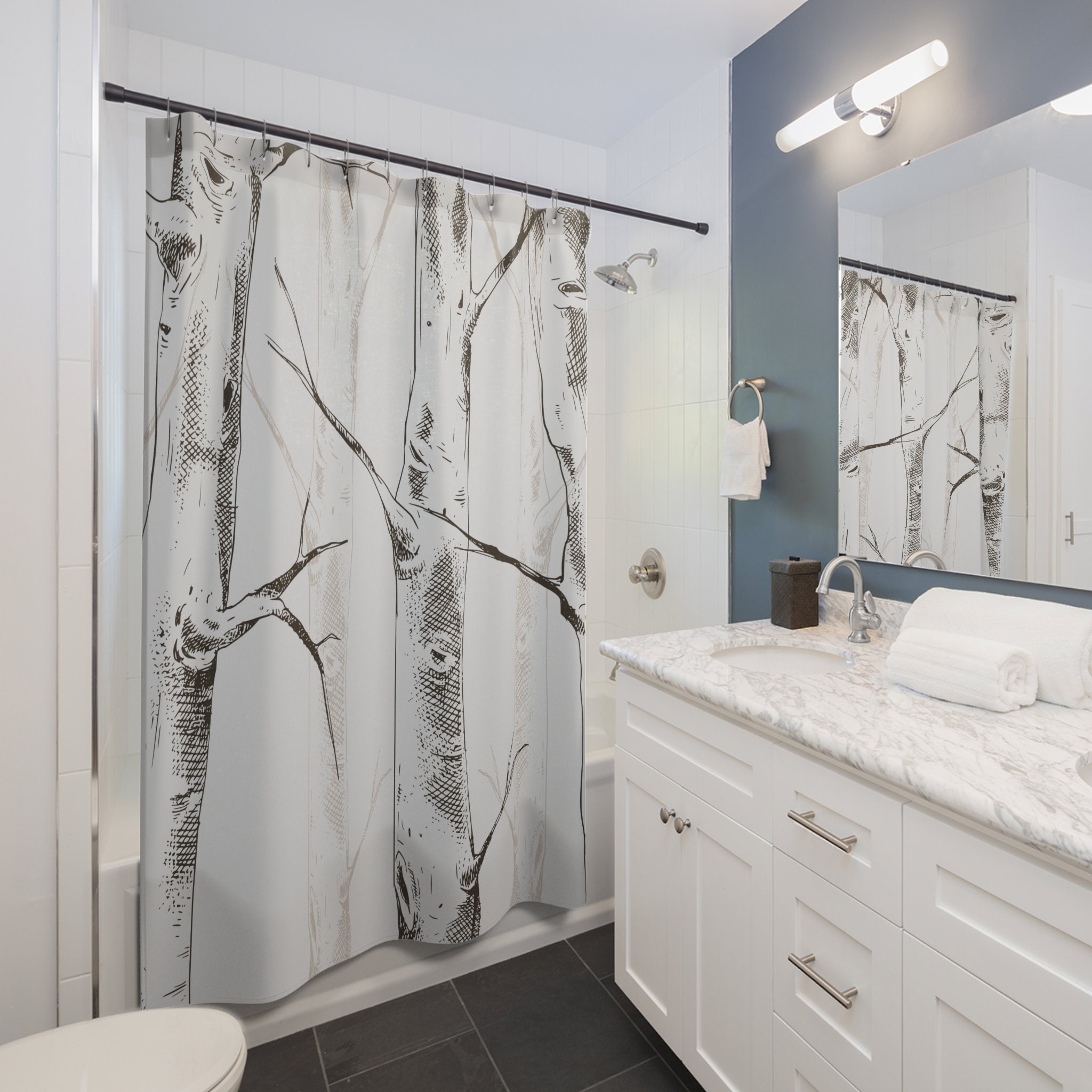 Goblincore Birch Forest Shower Curtain for Unique Nature Lover Home Decor