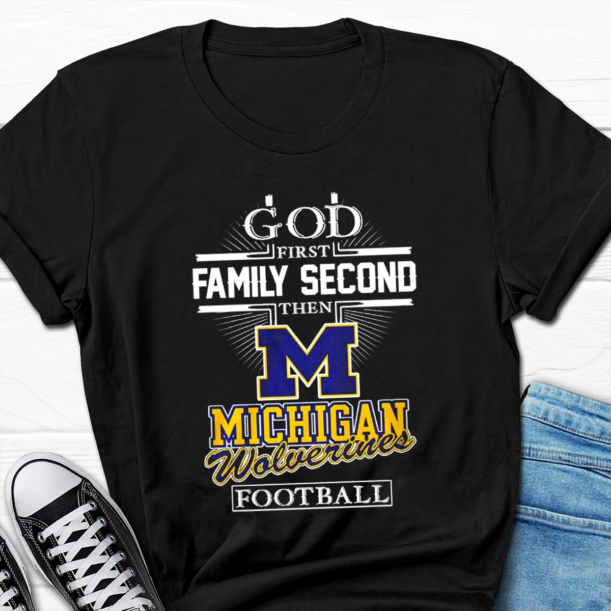 God First Family Second, Then Michigan Wolverines Football T-Shirt – Perfect for Fans