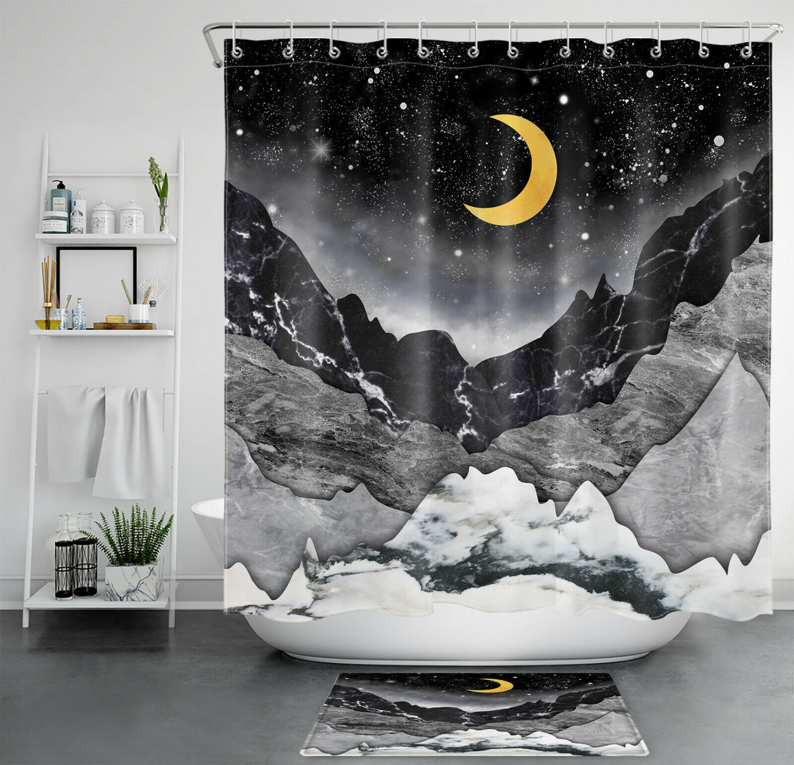 Golden Moon Mountains Abstract Marble Texture Shower Curtain for Luxurious Bathroom Decor