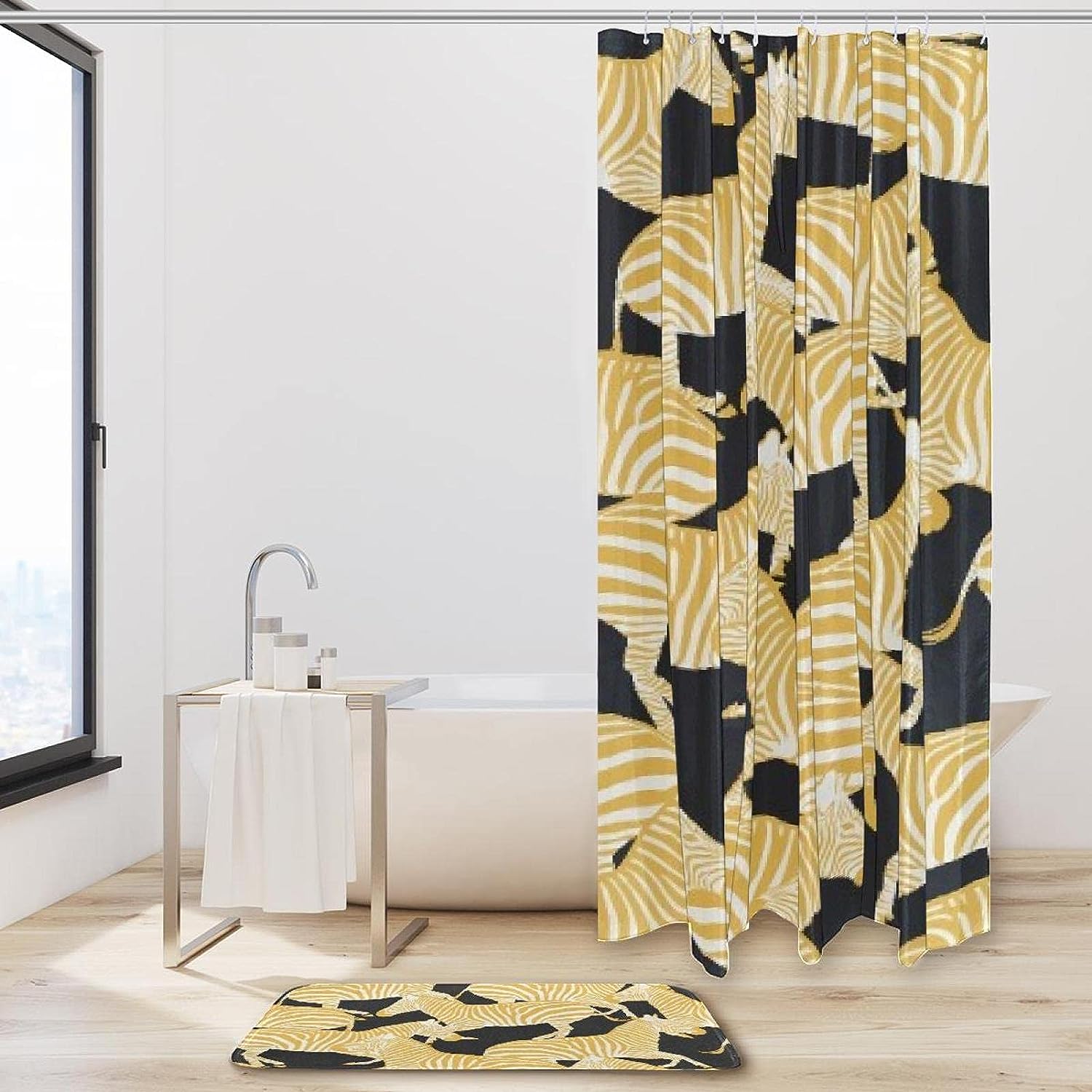Golden Zebra Waterproof Shower Curtain for Bold Bathroom Decor