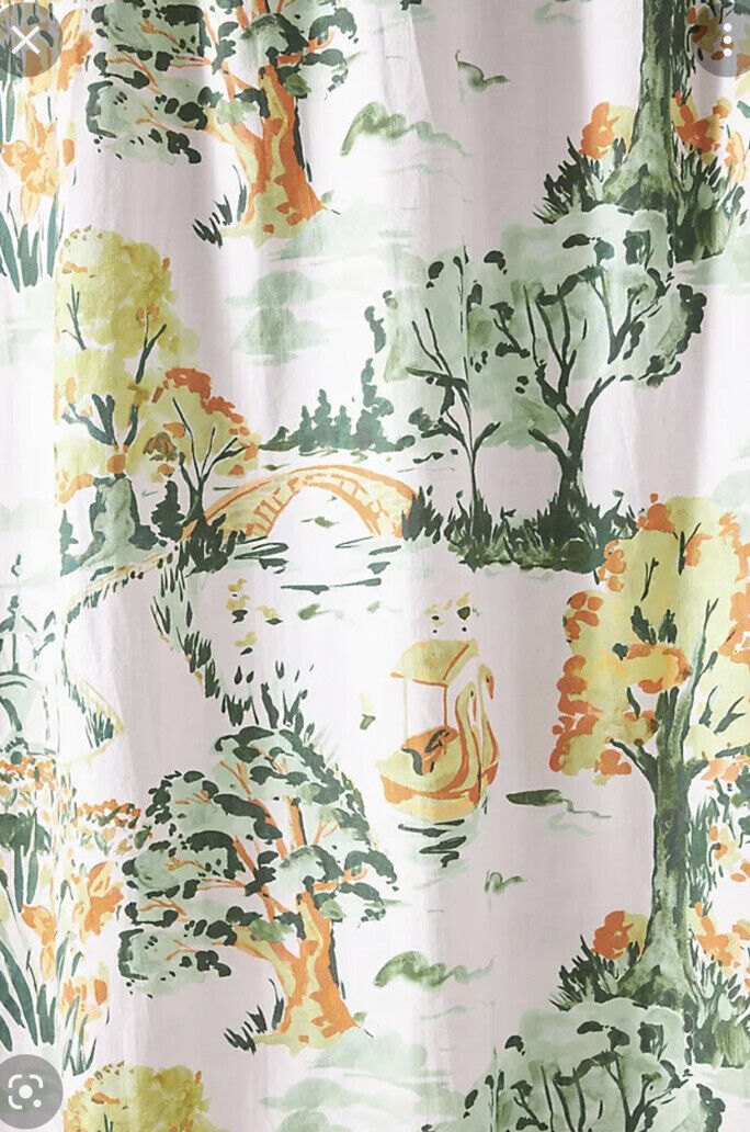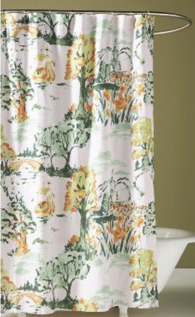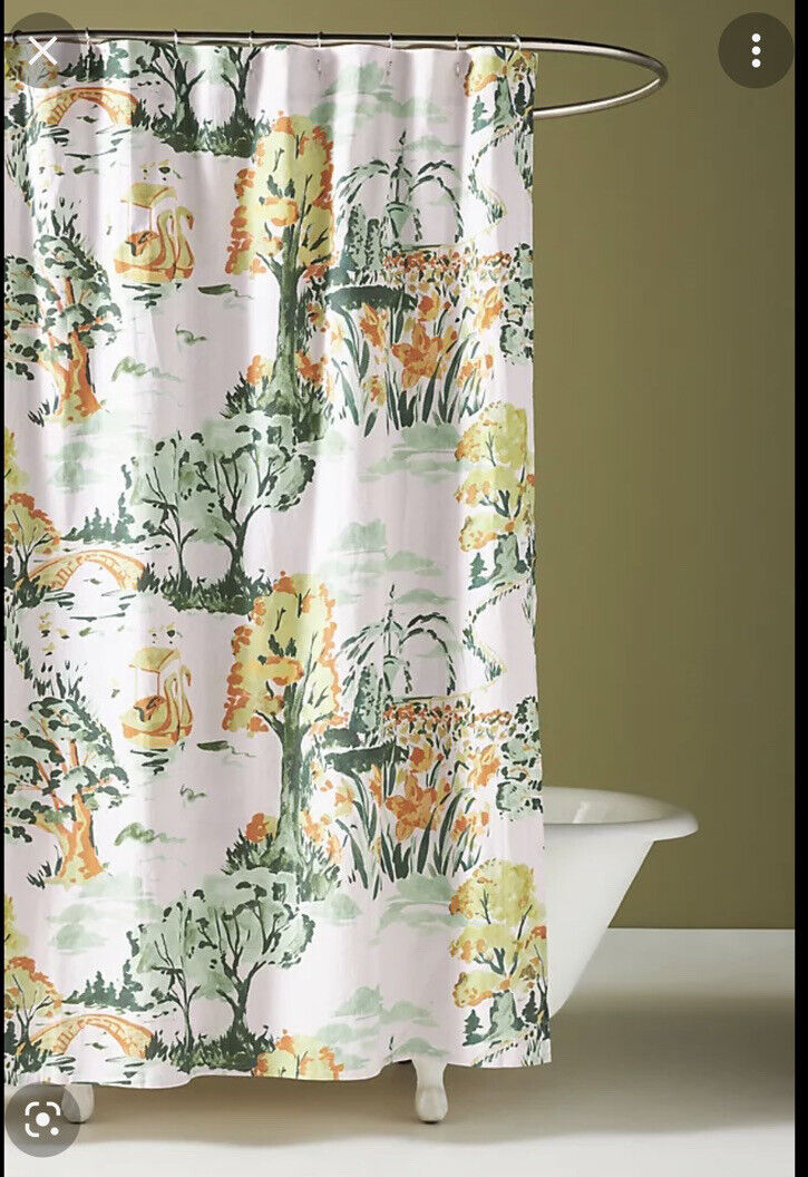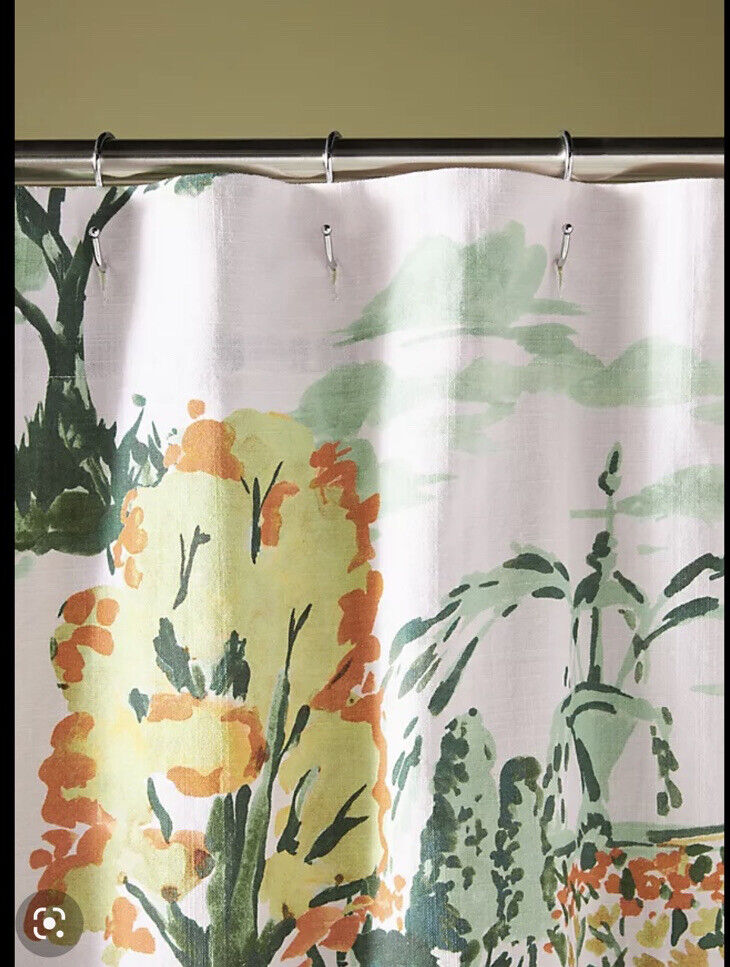 Green Floral Chinosella Shower Curtain – Organic Cotton for Bathroom Decor