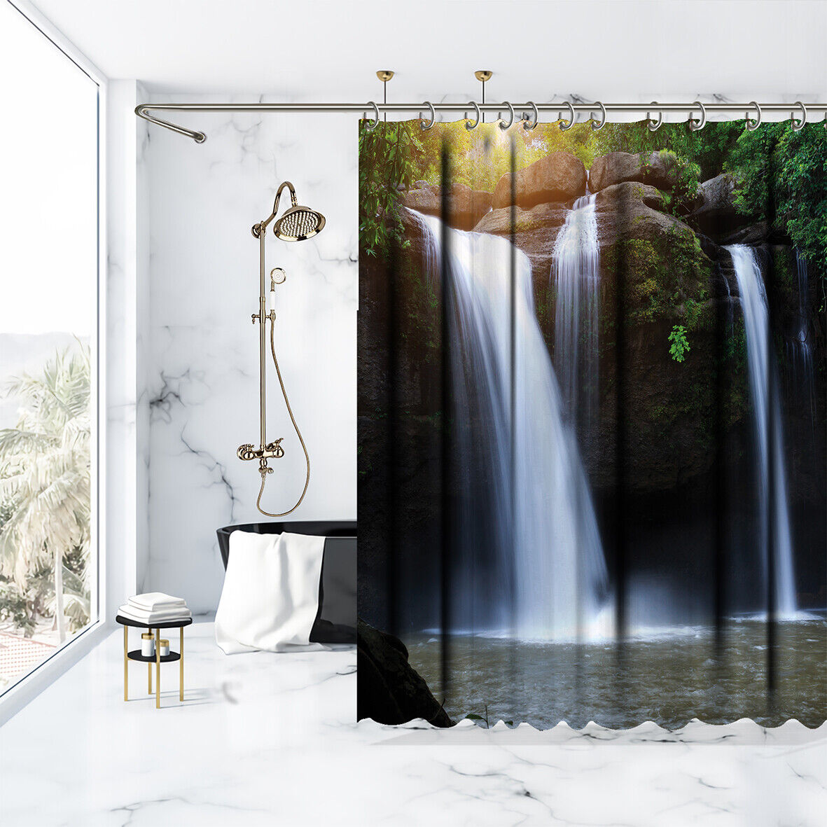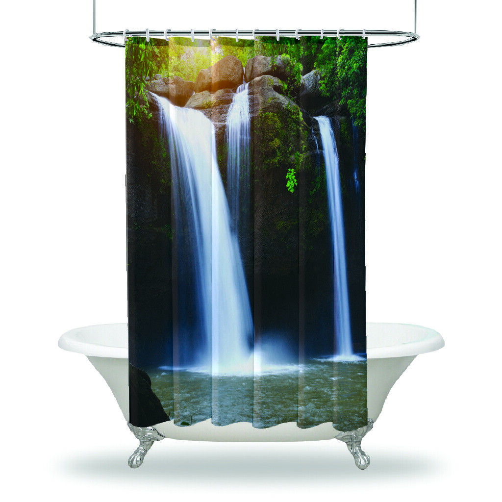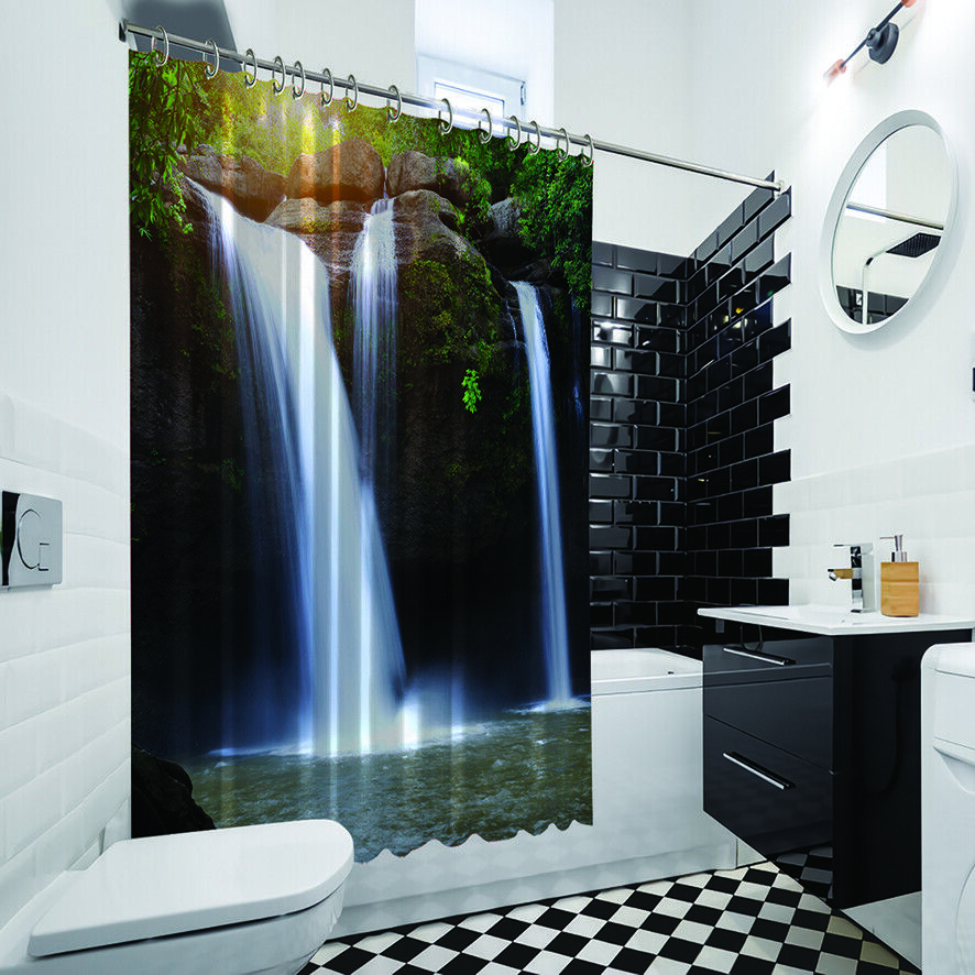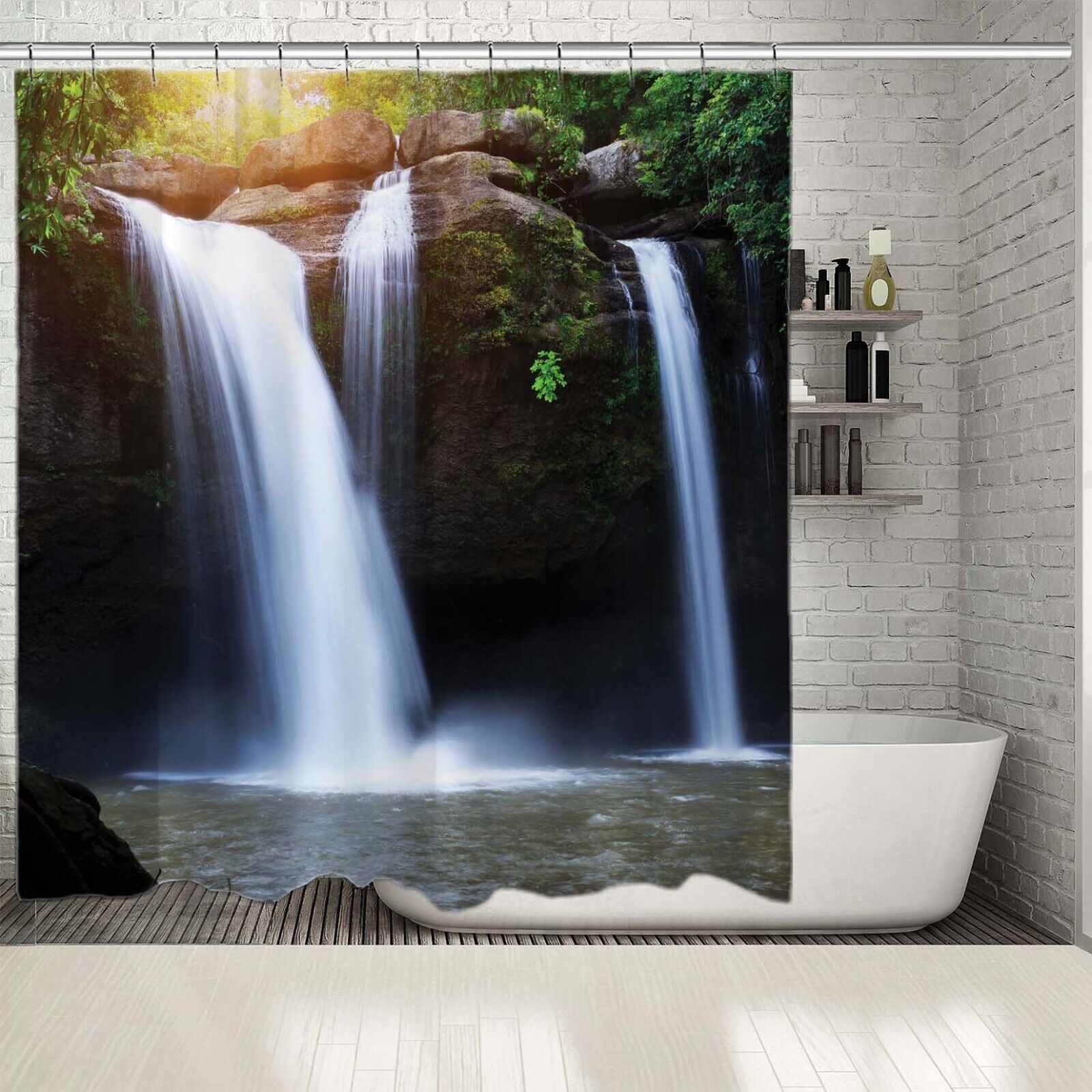 Green Forest Waterfall Bathroom Shower Curtain – Waterproof Fabric