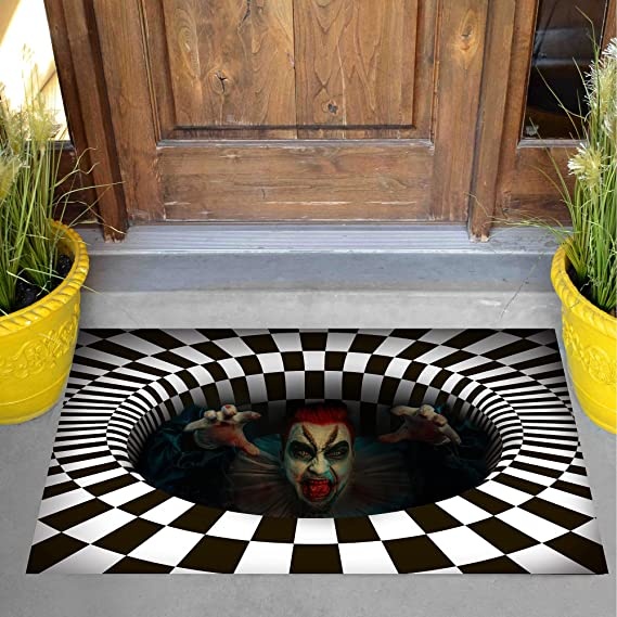 Halloween 3D Vortex Illusion Doormat, Stereo Vision Hole Natural Coir Scary Carpet for Halloween Room Decorations