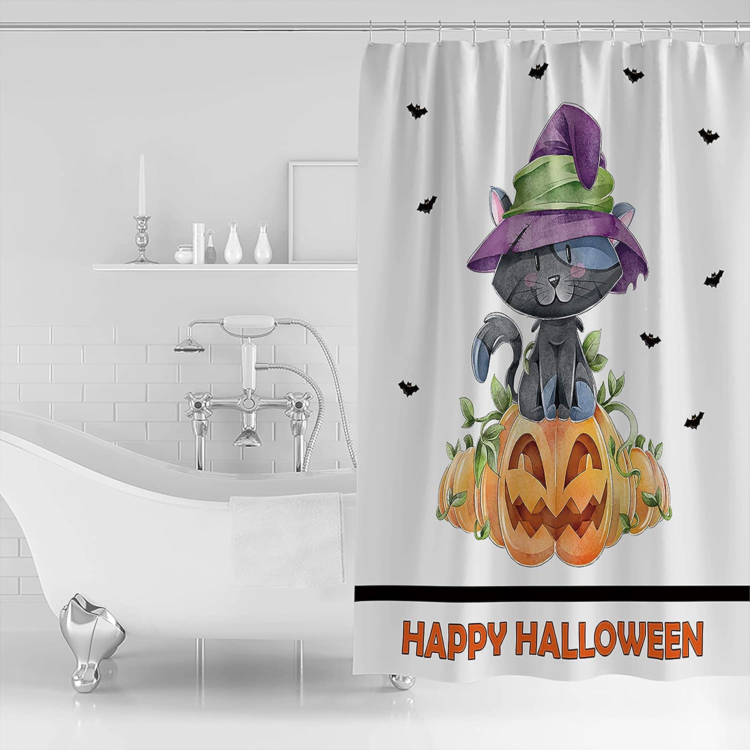Halloween Bats Black Cat Owl Pumpkins Shower Curtain – Spooky Bathroom Decor