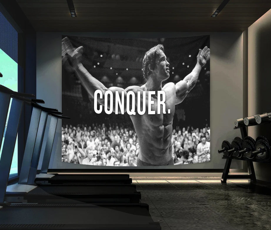 Home Gym Decor Conquer Motivational Quotes Flag Banner Tapestry