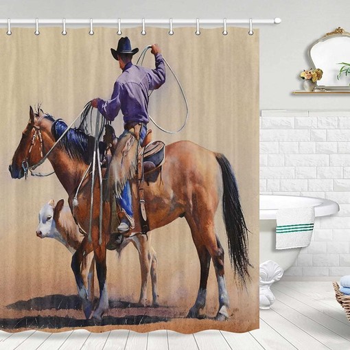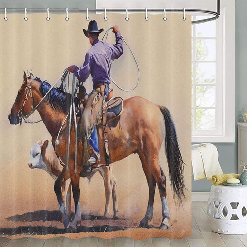 Horse Bathroom Decor Shower Curtain with Western Cowboy Theme, Gifts best