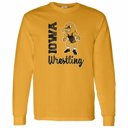 Iowa Hawkeyes Wrestling Herky Script, Team Color Shirt Sweatshirt Pullover Hoodie Reprinted Full Color Full Size