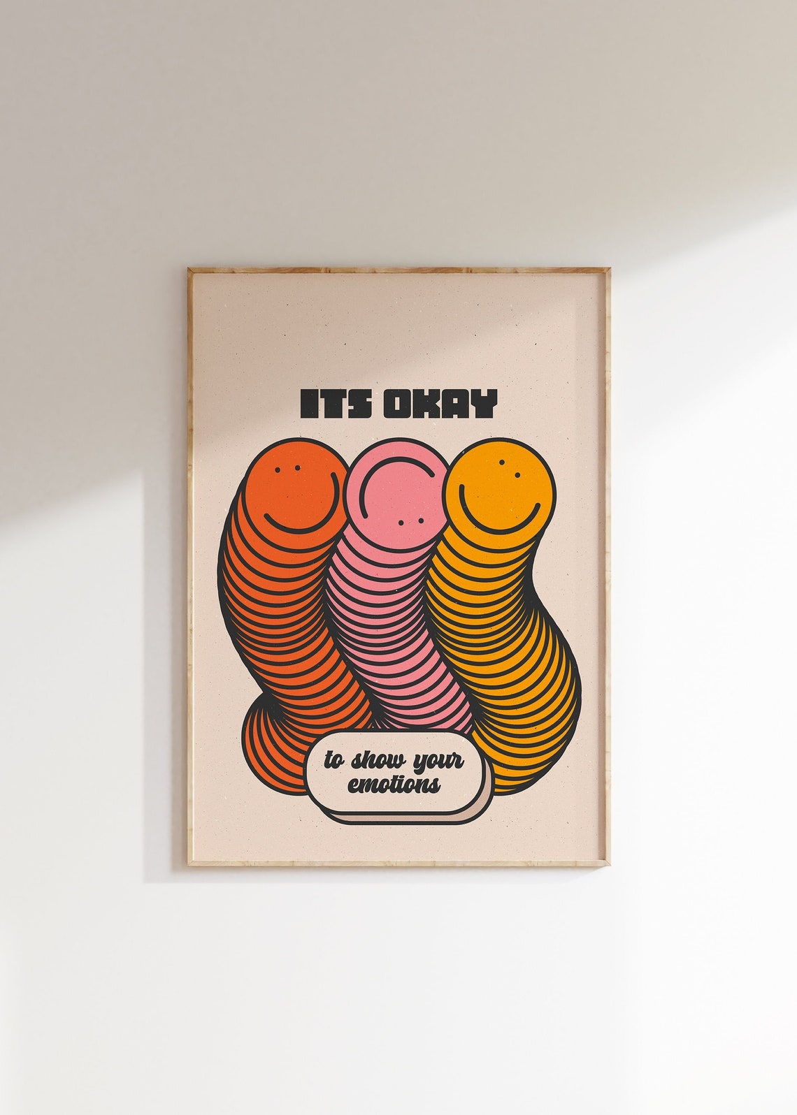 Its Okay To Show Your Emotions Motivational Quote Aesthetic Vintage 70s Poster Wall Art Canvas Prints