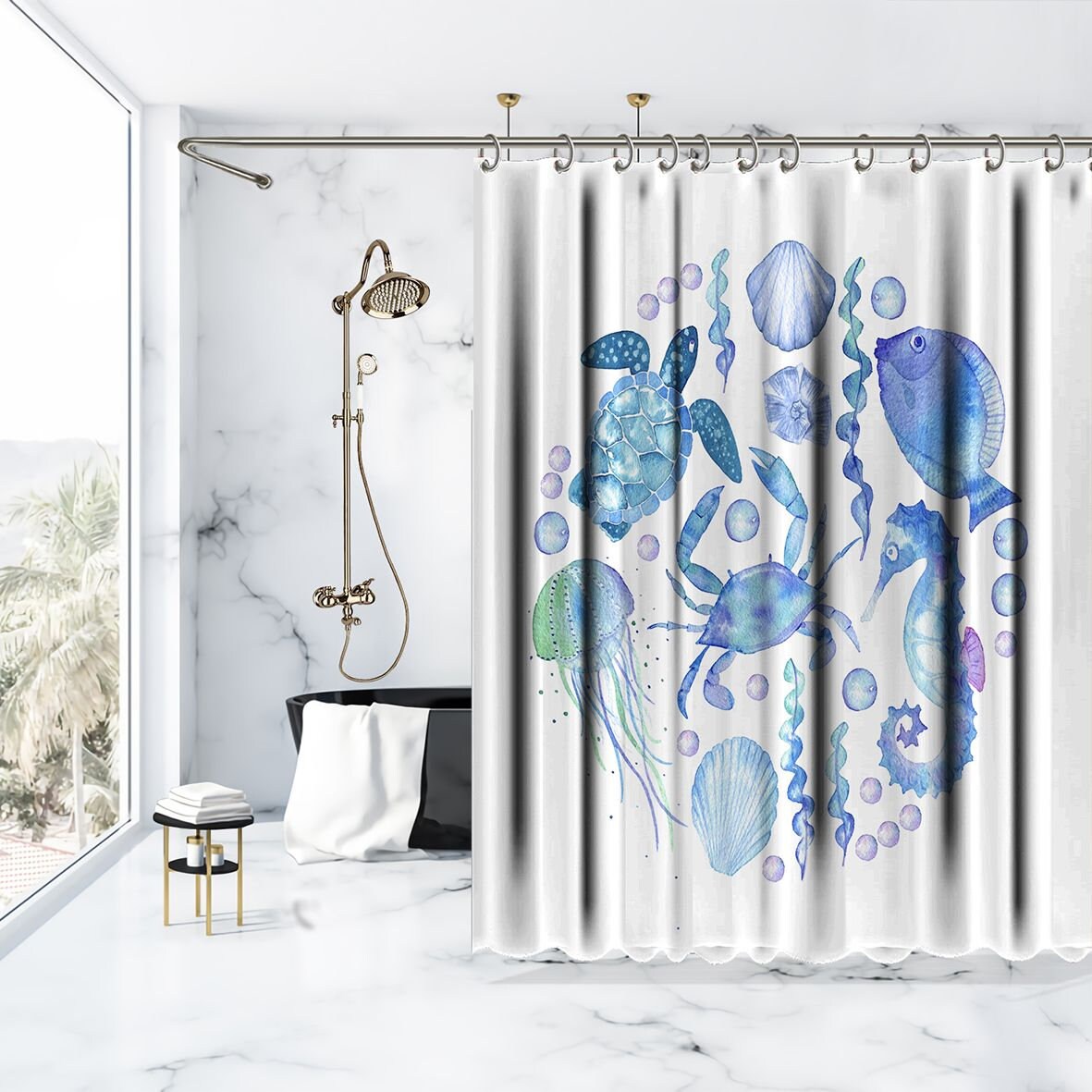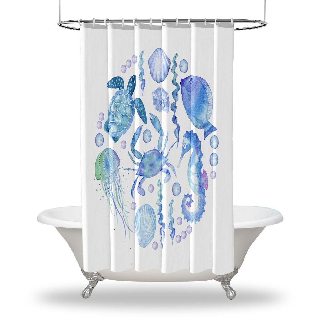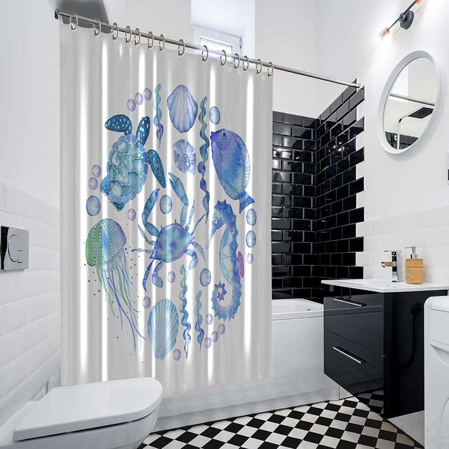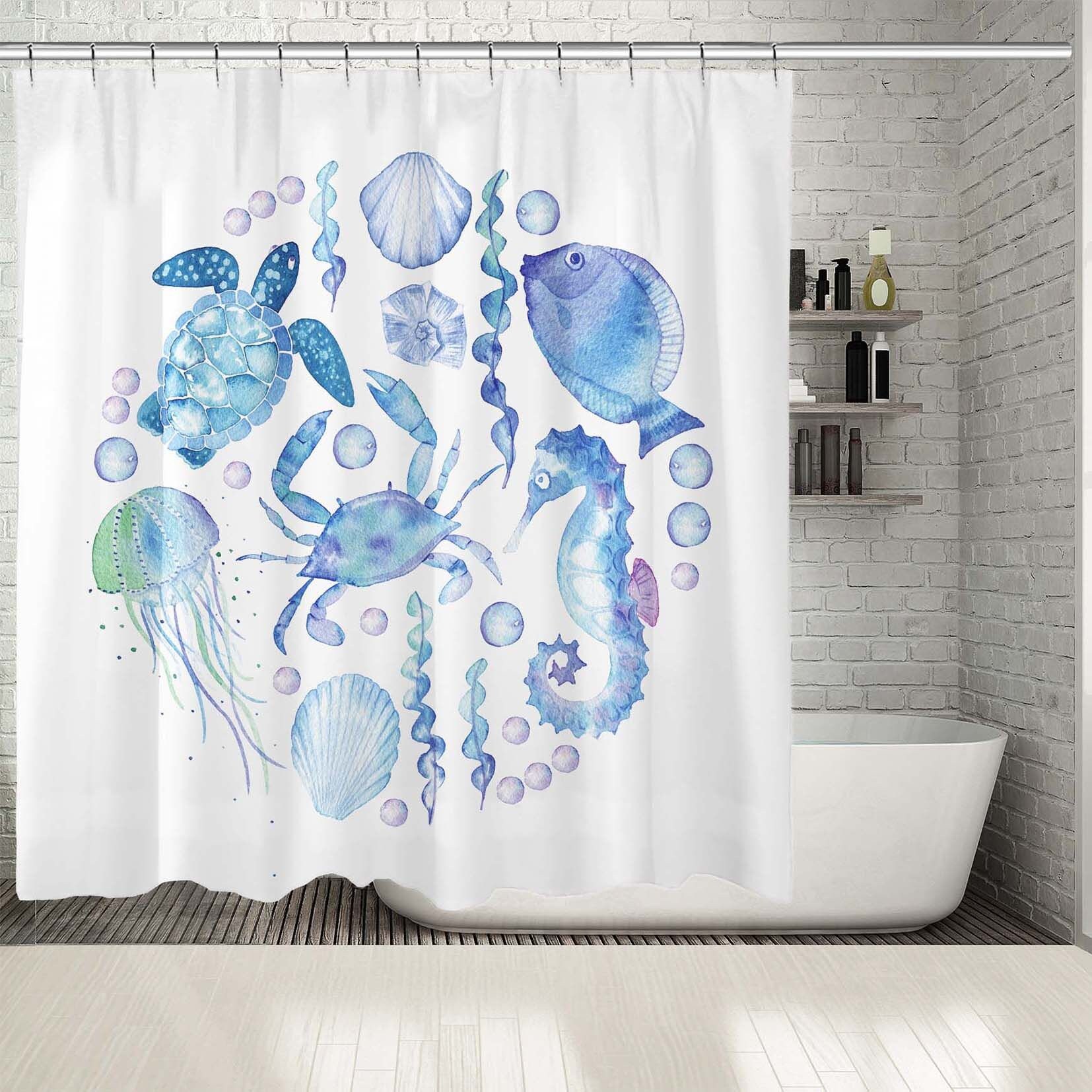 Jellyfish Seahorse Artistic Print Shower Curtain for your Bathroom