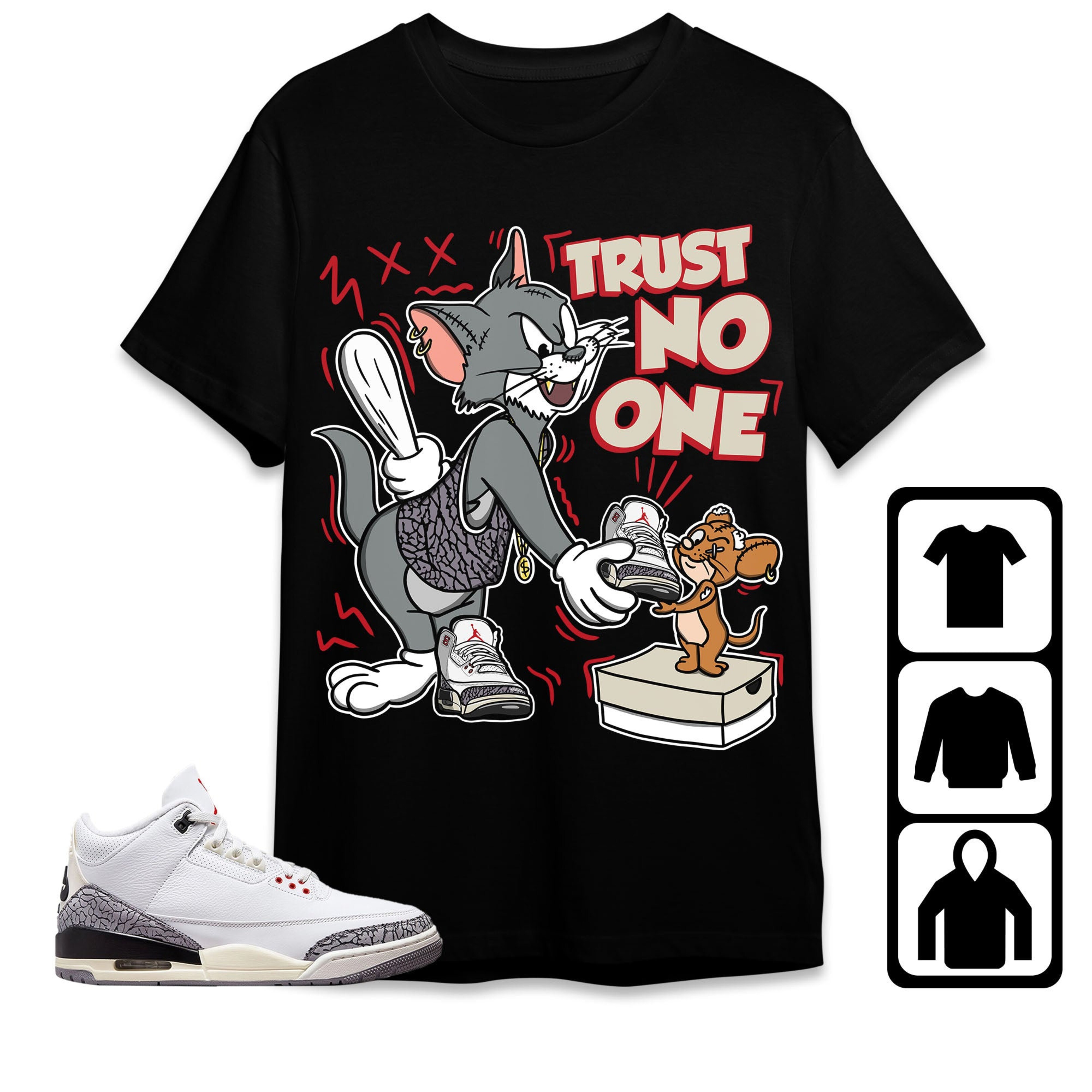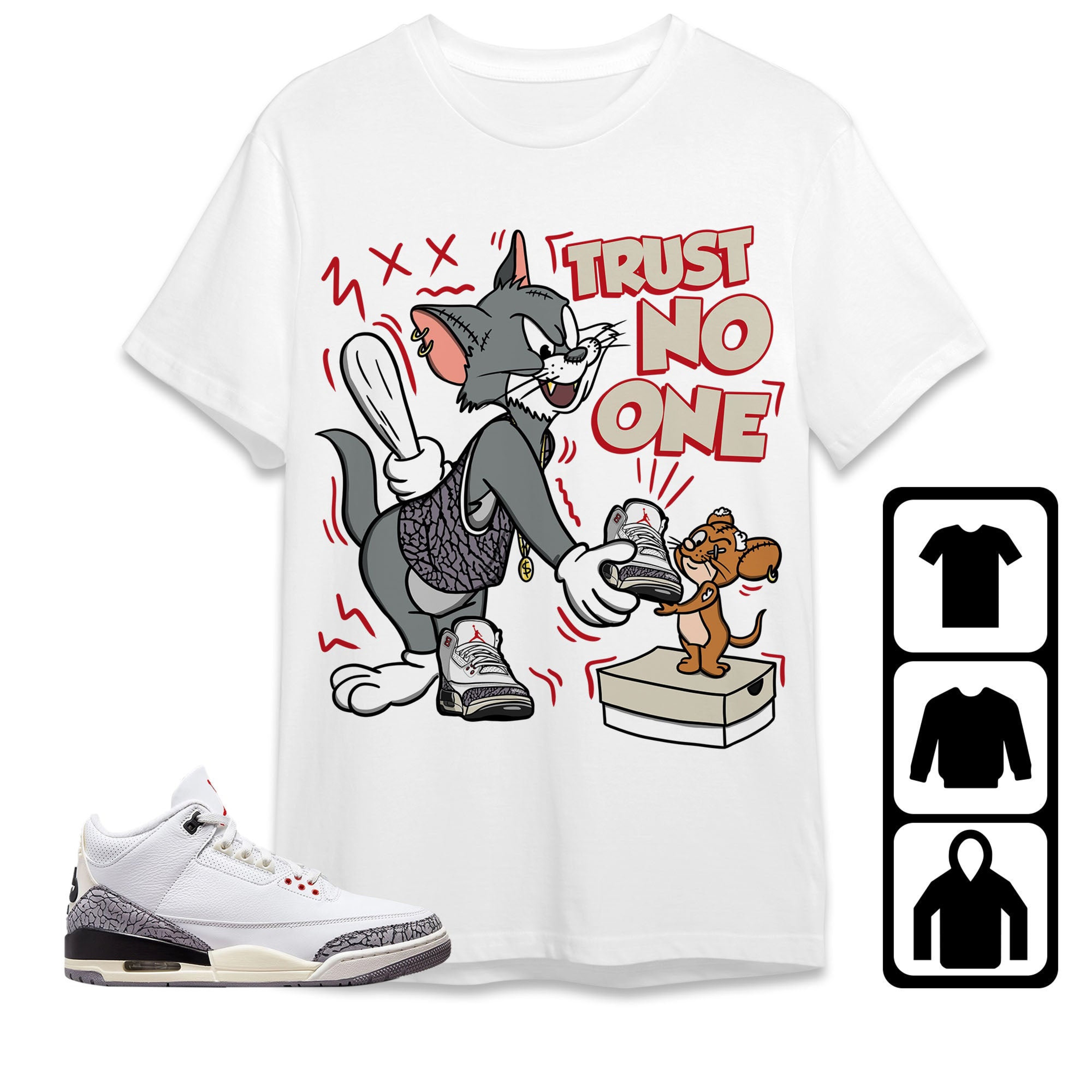 Jordan 3 White Cement Reimagined Unisex Shirt Trust No One Cat And Mouse, Shirt To Match Sneaker