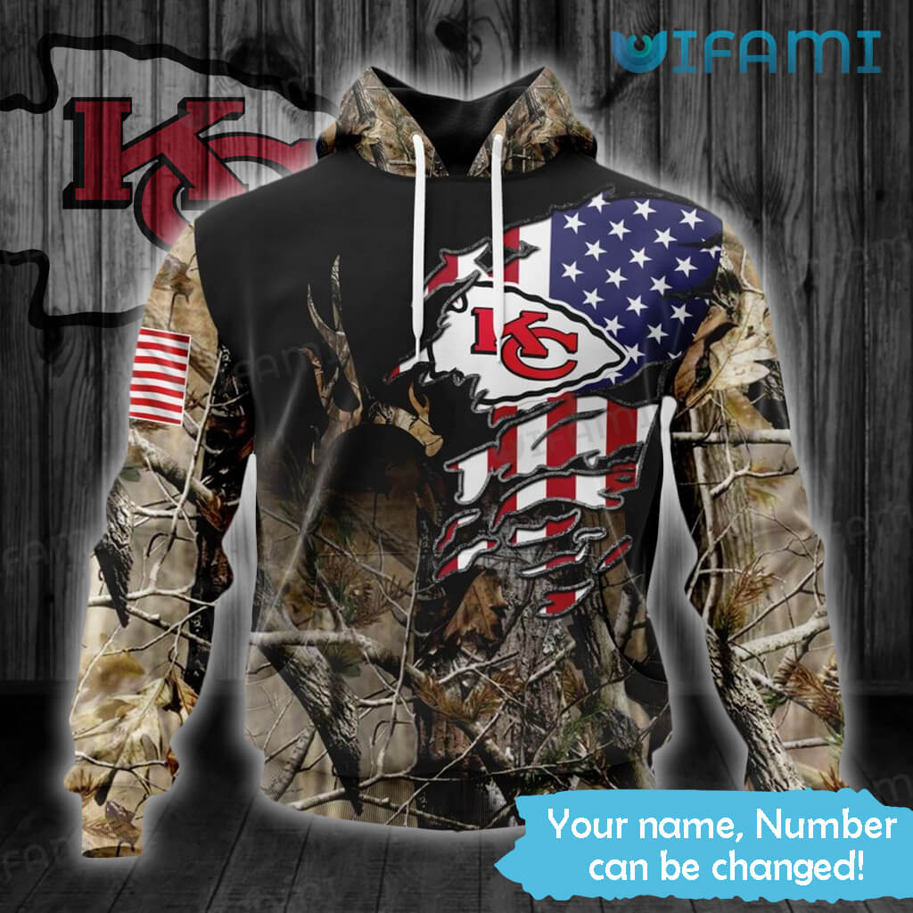 Kansas City Chiefs Camo Hoodie 3D American Flag Forest Pattern KC Chiefs Gift