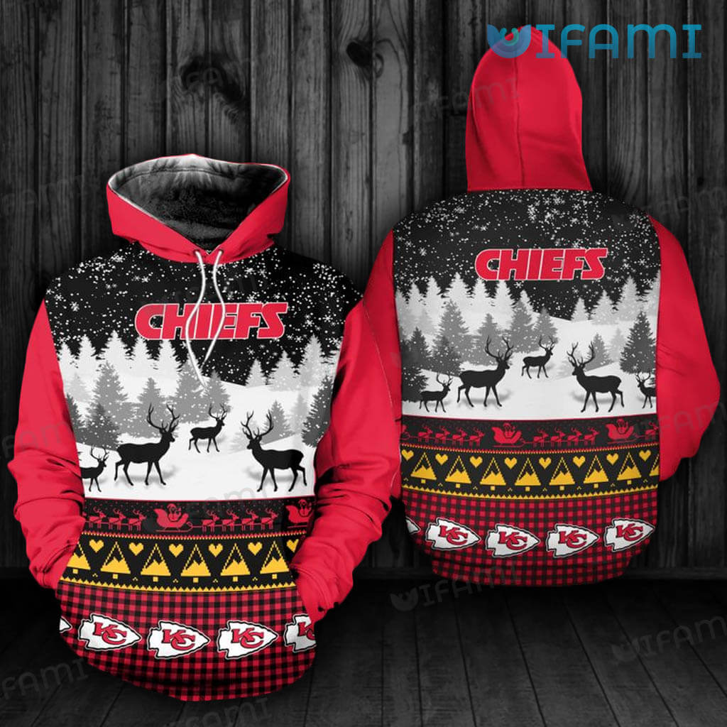 Kansas City Chiefs Hoodie 3D Christmas Reindeer Tribal Ethnic Pattern KC Chiefs Gift