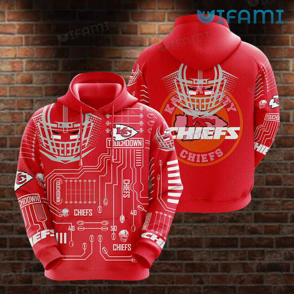 Kansas City Chiefs Hoodie 3D Field Football Helmet Sketch KC Chiefs Gift