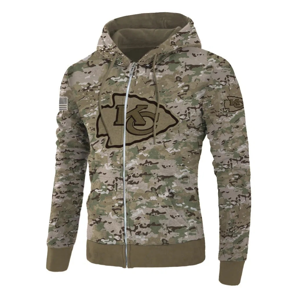 Kansas City Chiefs Hoodie Camo Printed 3D Pullover Zip Up Hoodies Gifts for Fans