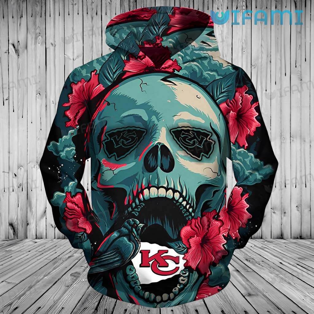KC Chiefs Hoodie 3D Bird Skull Flower Unique Kansas City Chiefs Gift