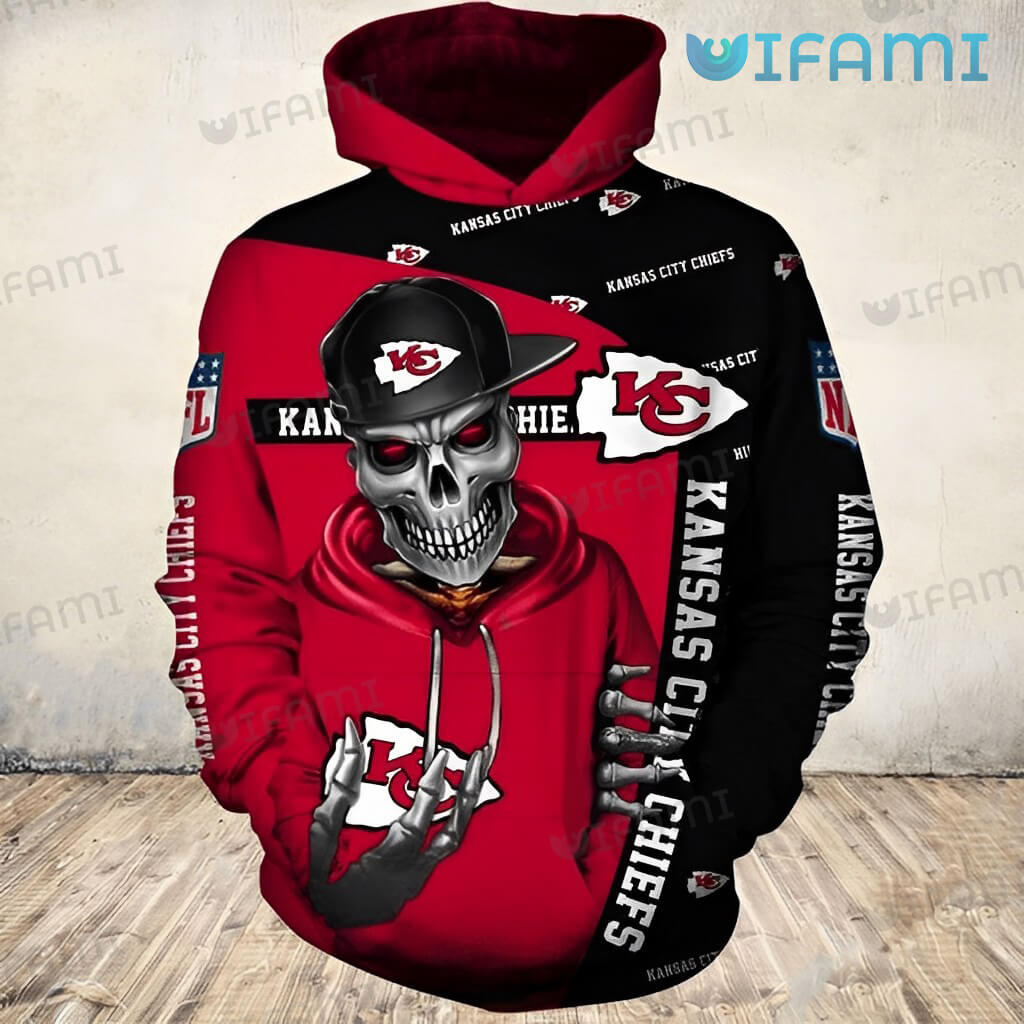 KC Chiefs Hoodie 3D Death Wearing Hat Logo Kansas City Chiefs Gift