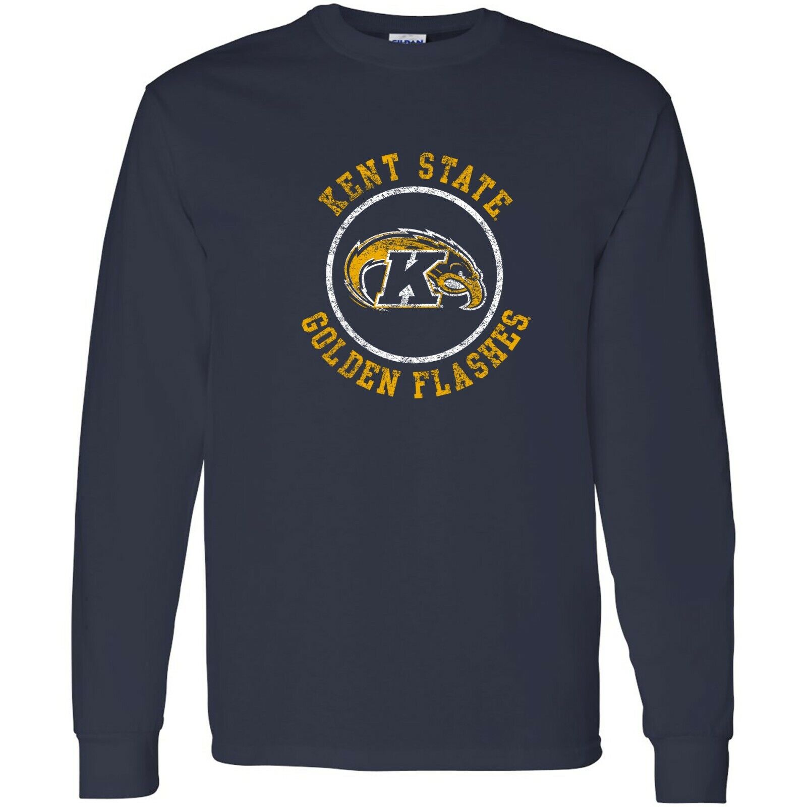 Kent State Golden Flashes Distressed Circle Logo Shirt Sweatshirt Pullover Hoodie Reprinted Full Color Full Size