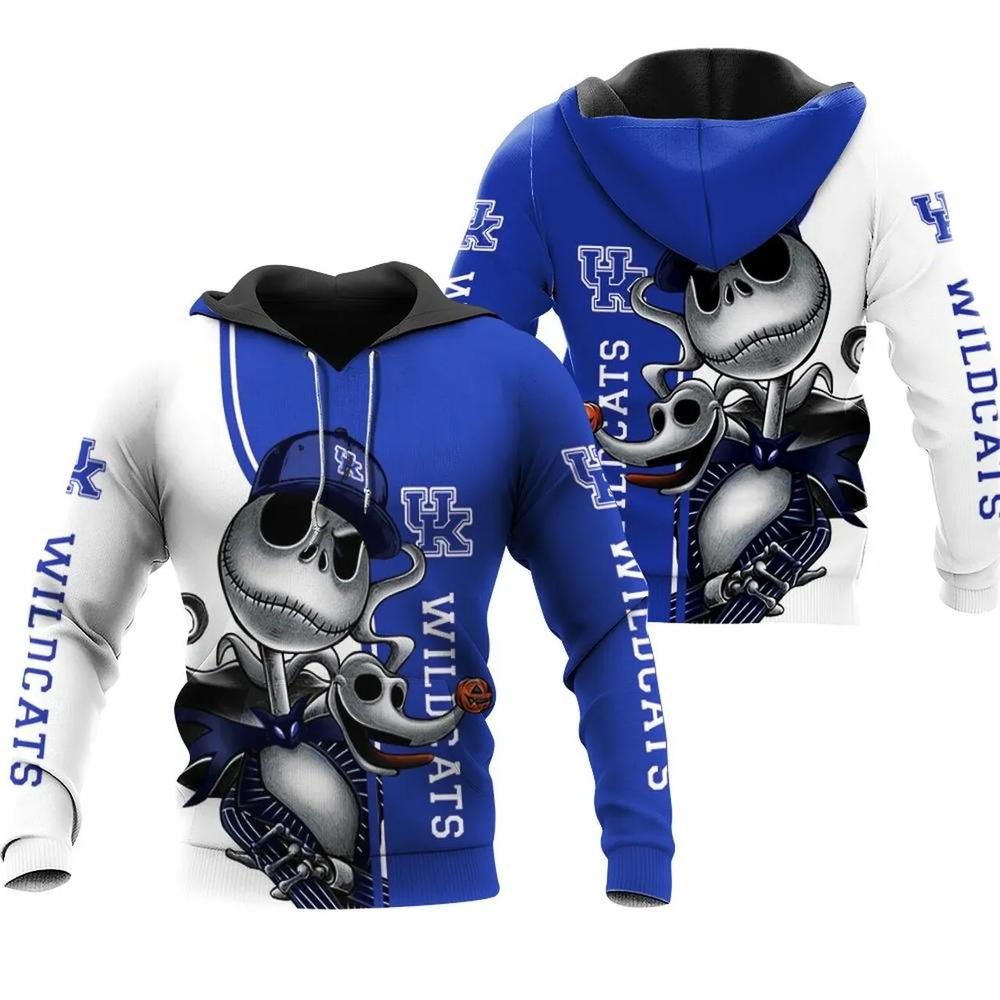 Kentucky Wildcats Jack Skellington And Zero 3D Hoodie Kentucky Wildcats Gifts for Her