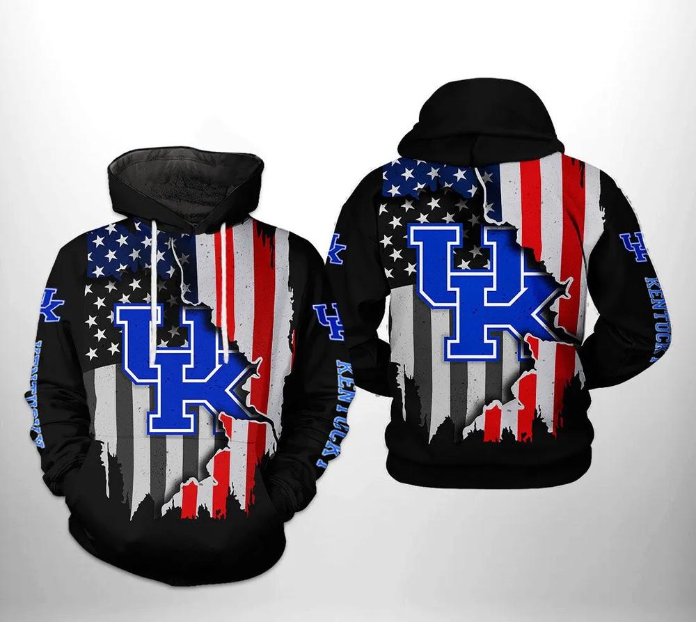 Kentucky Wildcats US Flag Distressed 3D Hoodie Kentucky Wildcats Fans Gift