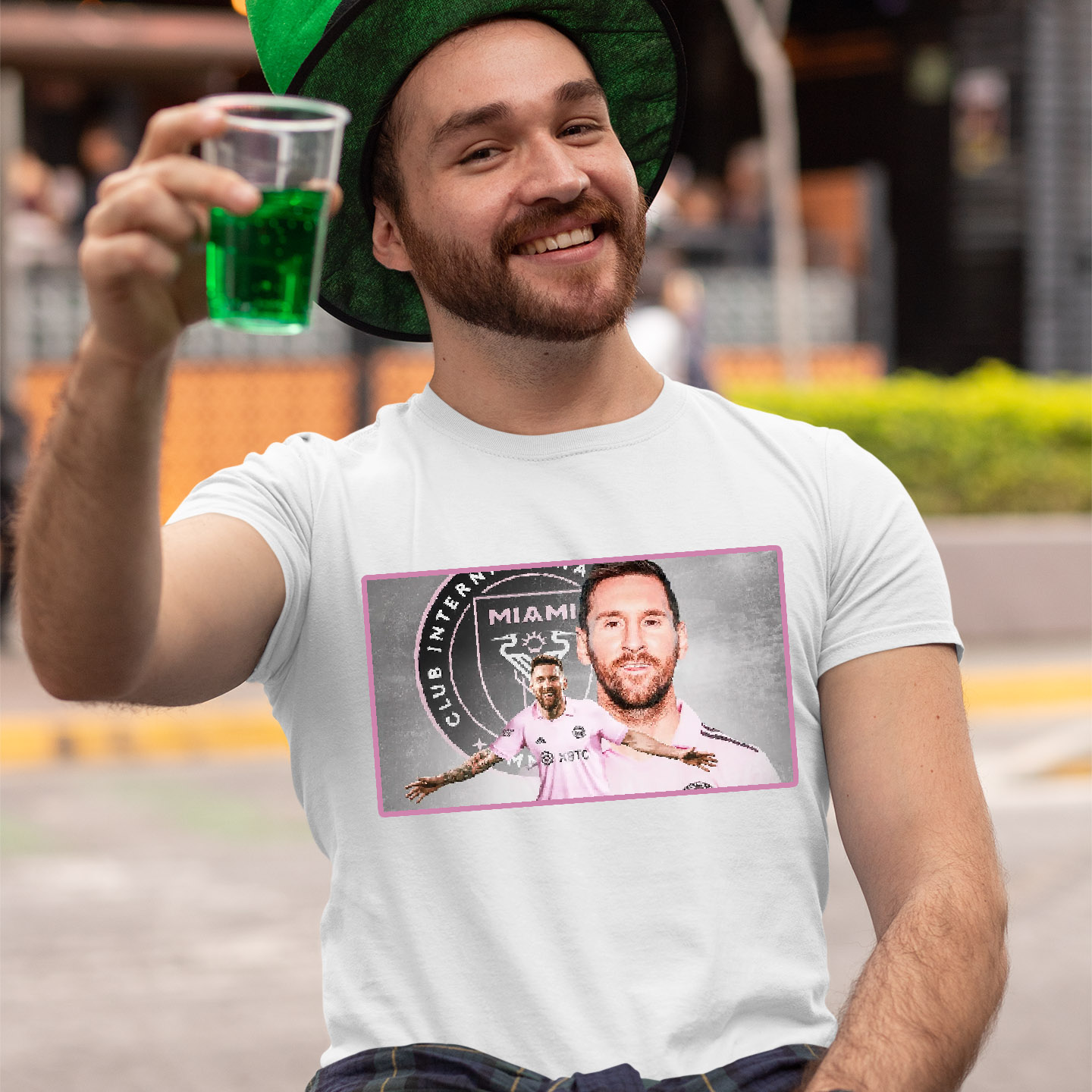 Celebrate the arrival of Lionel Messi at Inter Miami FC with our “The GOAT is in Miami” T-shirt. Show your support for the legendary footballer and your favorite team with this officially licensed merchandise. Made with premium-quality materials, this T-shirt offers both style and comfort. With its bold design and iconic slogan, it’s the perfect way to showcase your admiration for Messi and your excitement for his new chapter in Miami. Don’t miss out on this limited-edition T-shirt. Get yours now and join the Messi fever at Inter Miami FC.