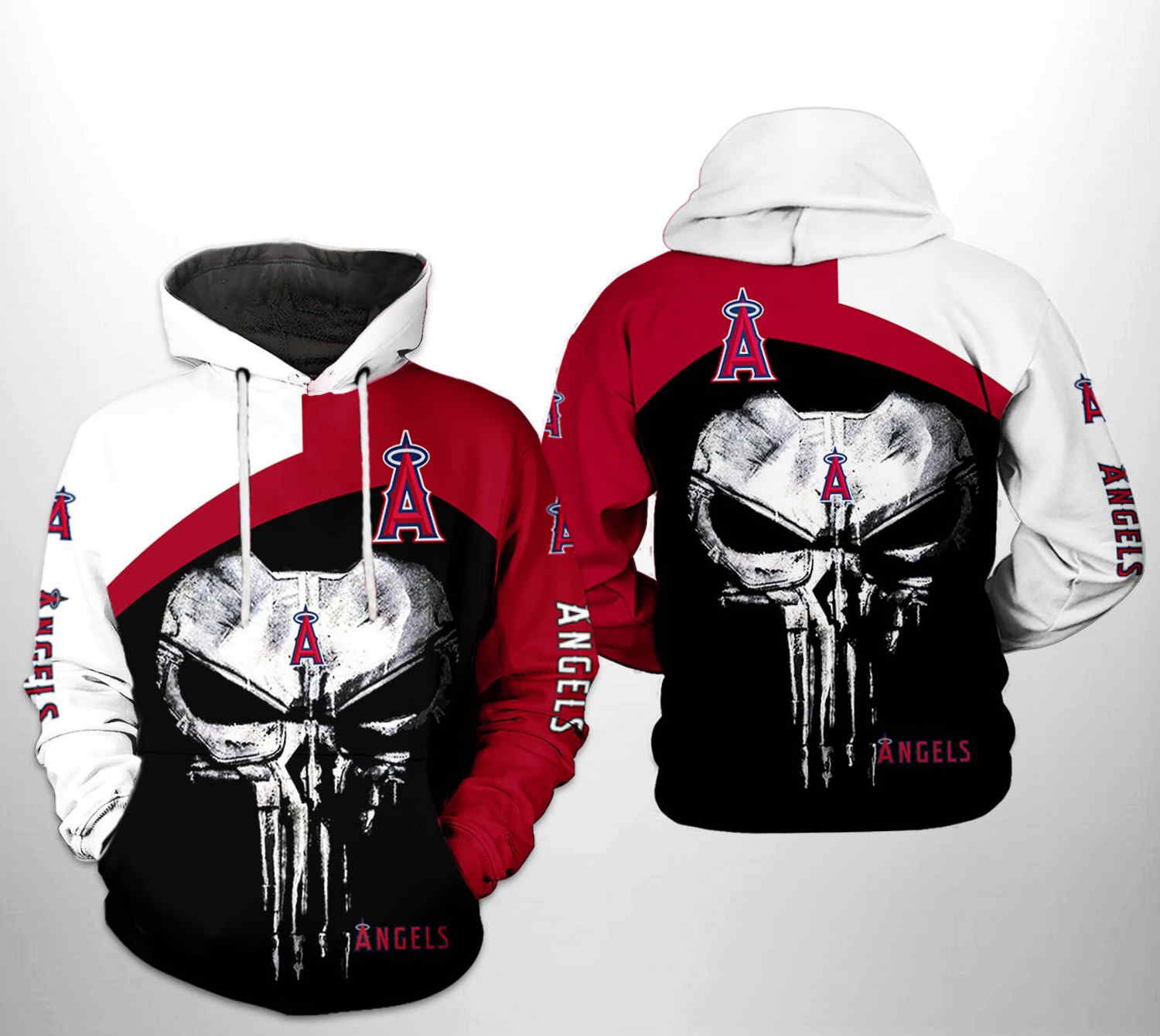 Los Angeles Angels MLB Skull Punisher 3D Hoodie Zipper Hoodie