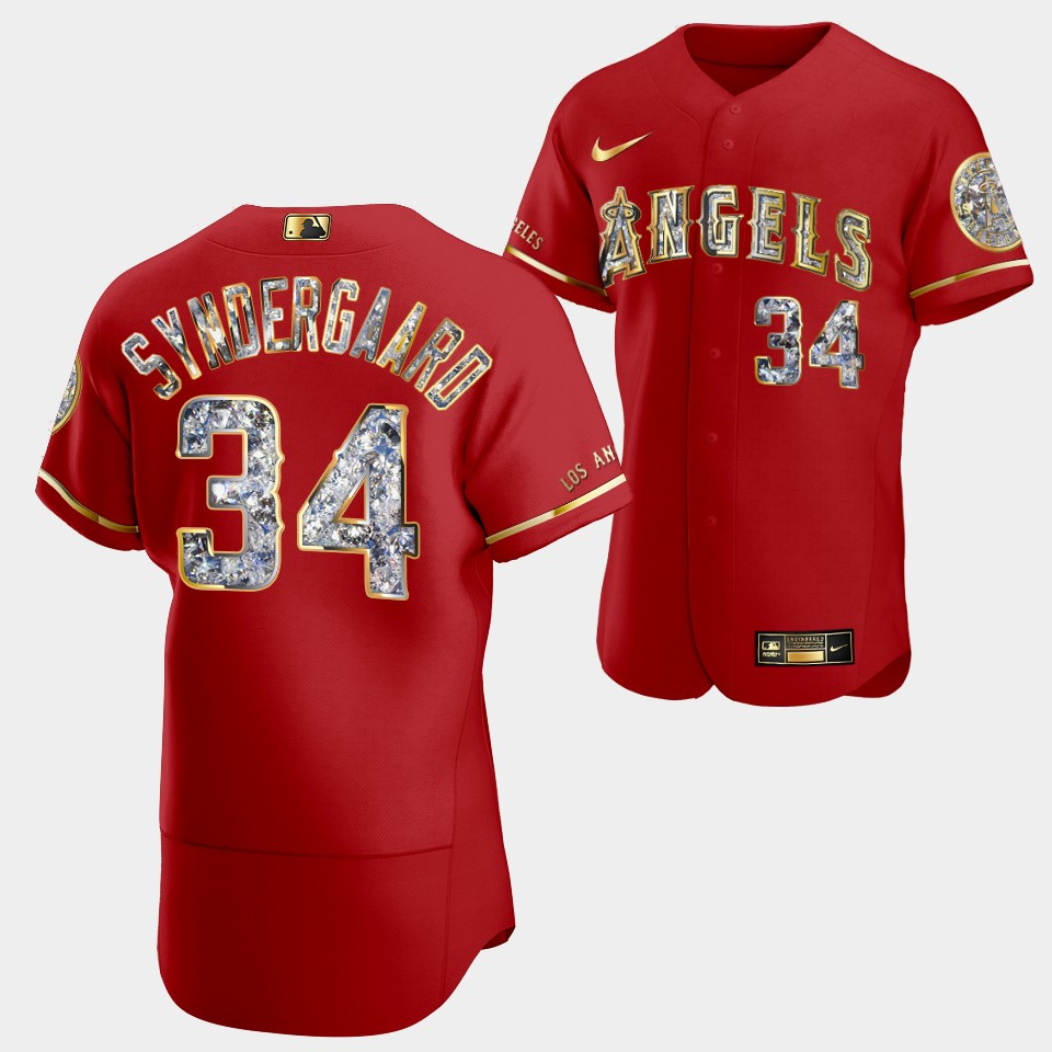 Los Angeles Angels Noah Syndergaard Red Jersey 34 Golden Diamond 2022-23-23 Uniform