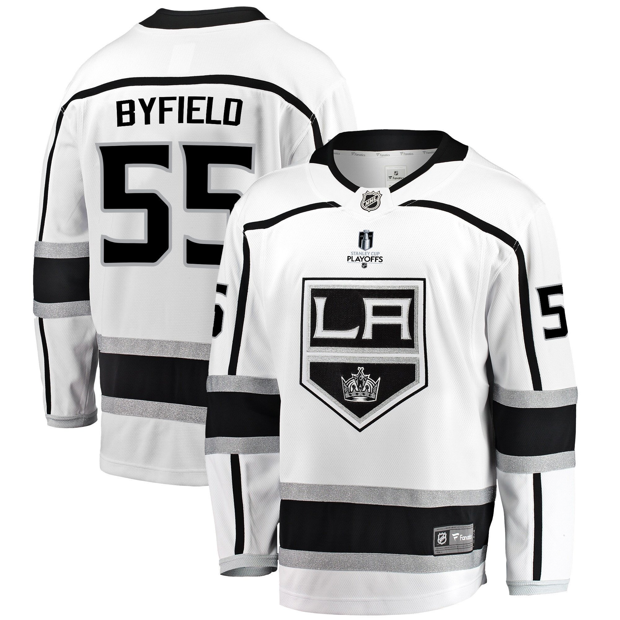 Los Angeles Kings Quinton Byfield 55 Away 2022 Stanley Cup Playoffs Breakaway Men Jersey – White
