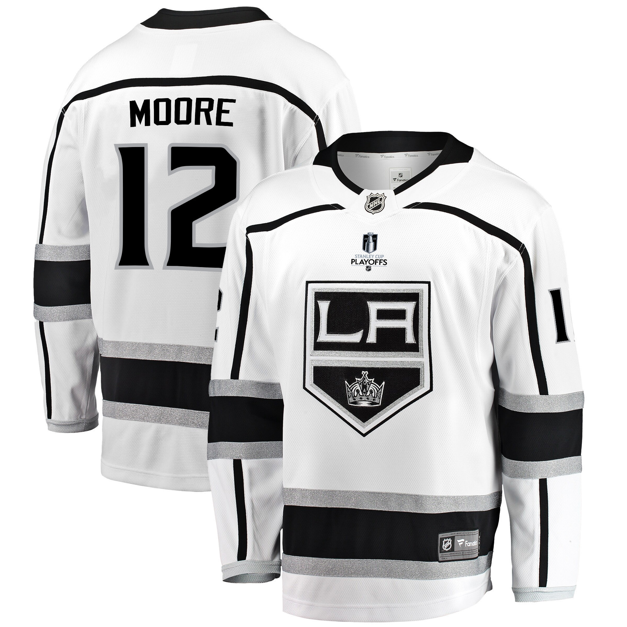 Los Angeles Kings Trevor Moore 12 Away 2022 Stanley Cup Playoffs Breakaway Men Jersey – White