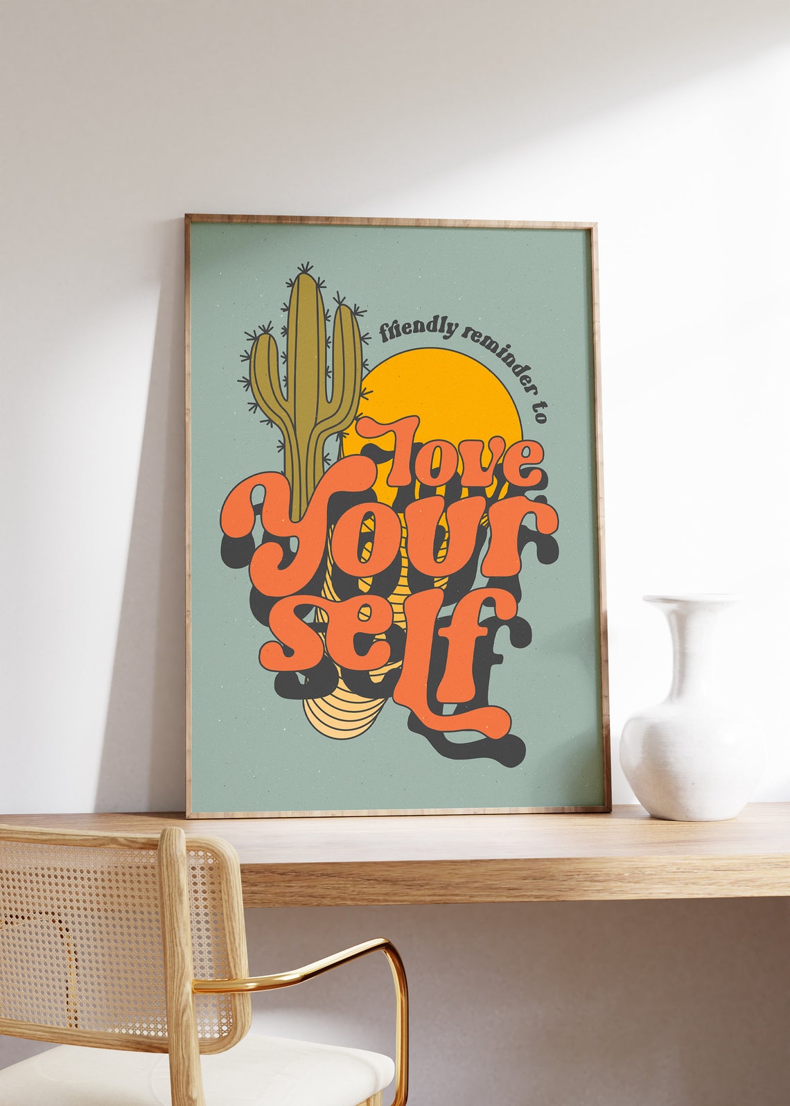 Love Yourself Motivational Quote Aesthetic Vintage 70s Poster Wall Art Canvas Prints