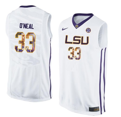 Male LSU Tigers White Shaquille O’Neal College Basketball Jersey