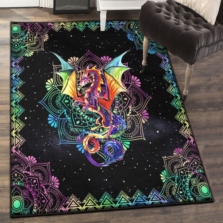 Mandala Flower Art Deco Rug, Dragon Mandala Rug, Dragon Area Rug, Dragon Themed Rugs, Gift For Dragon Lovers, Personalized Rug, Carpet For Living Room, Bedding Room Home Decor DG79