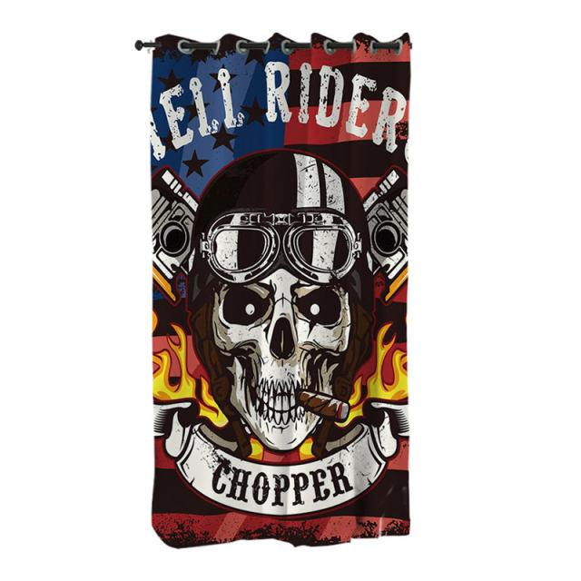 Mechanic Fire Flame Hell Rider Chopper Skull Blackout Curtain