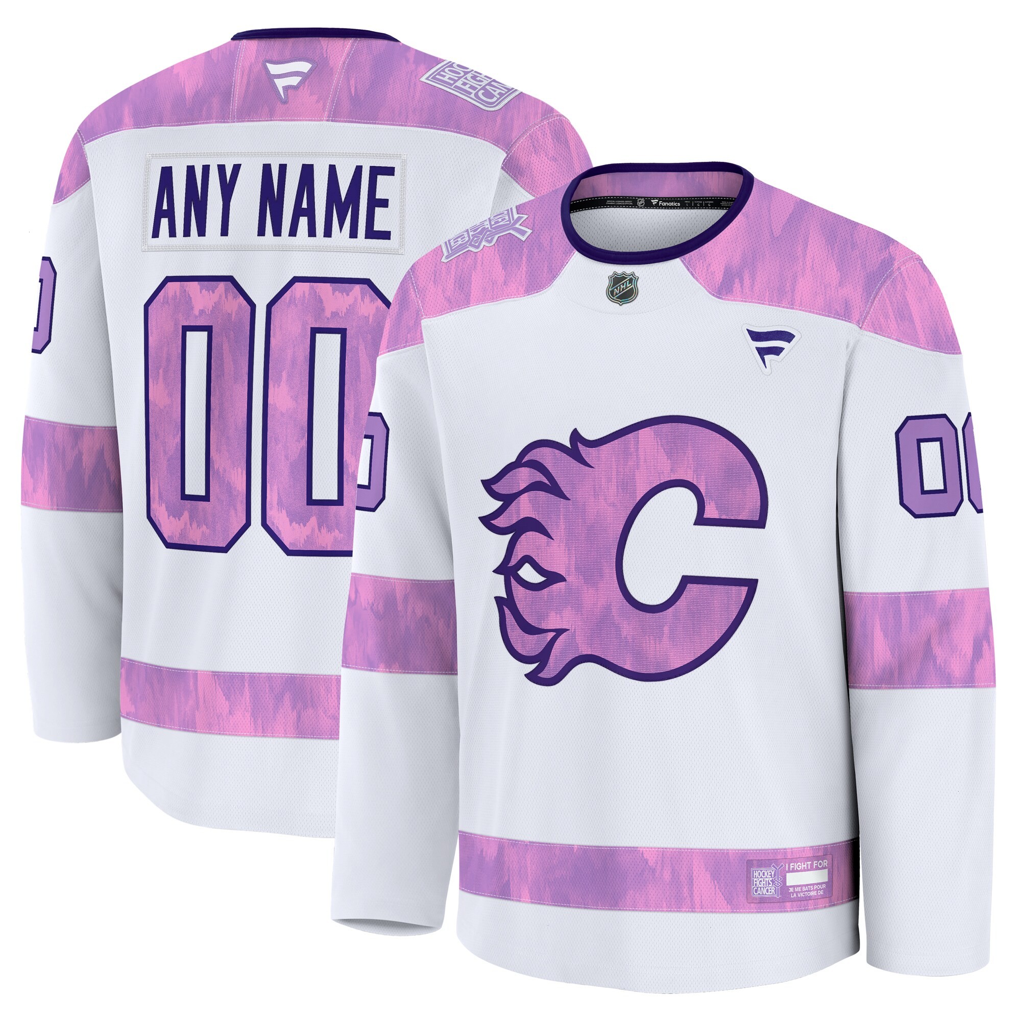 Men’s Calgary Flames Fanatics White 2024 Hockey Fights Cancer Custom Practice Jersey
