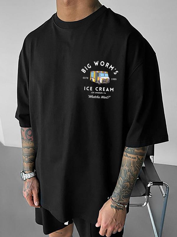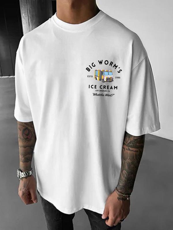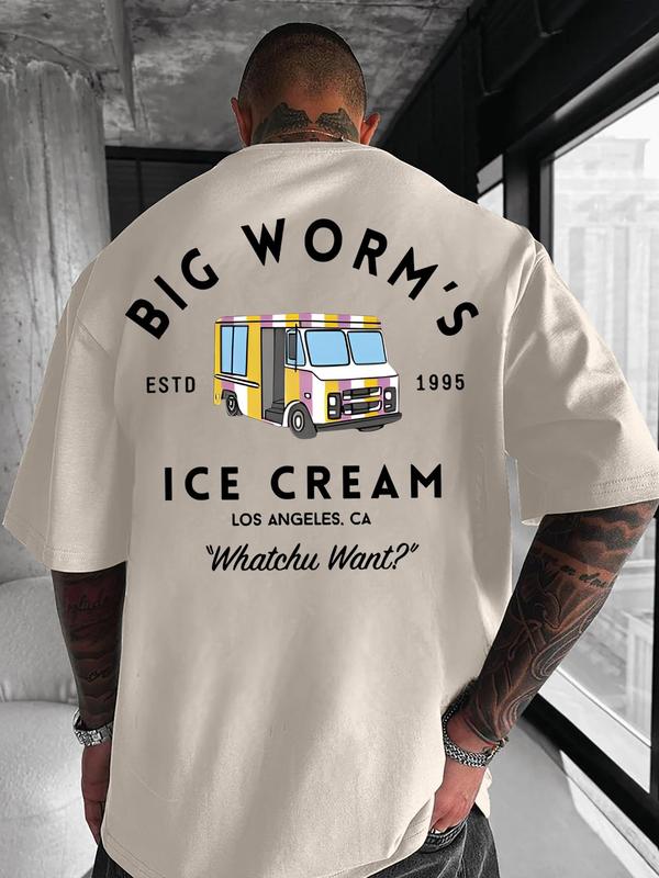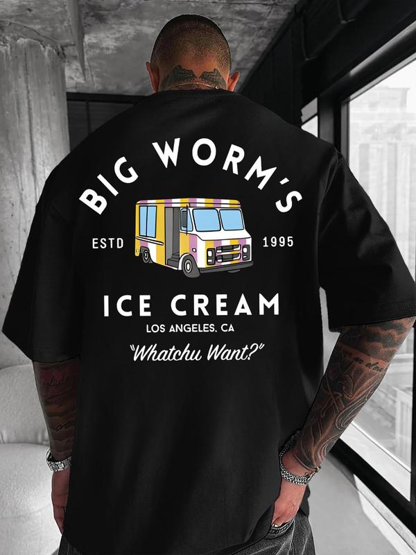 The visual elements on this shirt contribute immensely to its appeal. Adorned with a vibrant cartoon-style graphic of an ice cream truck, it immediately transports the observer to sun-soaked days filled with the laughter and cheer typically associated with summer adventures. The bold, approachable typography proudly declares “BIG WORM’S ICE CREAM”, serving as both a business identity and a playful reference to its cinematic roots. Accompanied by the specific year of establishment, 1995, and the location, “LOS ANGELES, CA”, it not only adds authenticity but also invites nostalgia for those familiar with the cultural milieu of that time and place.