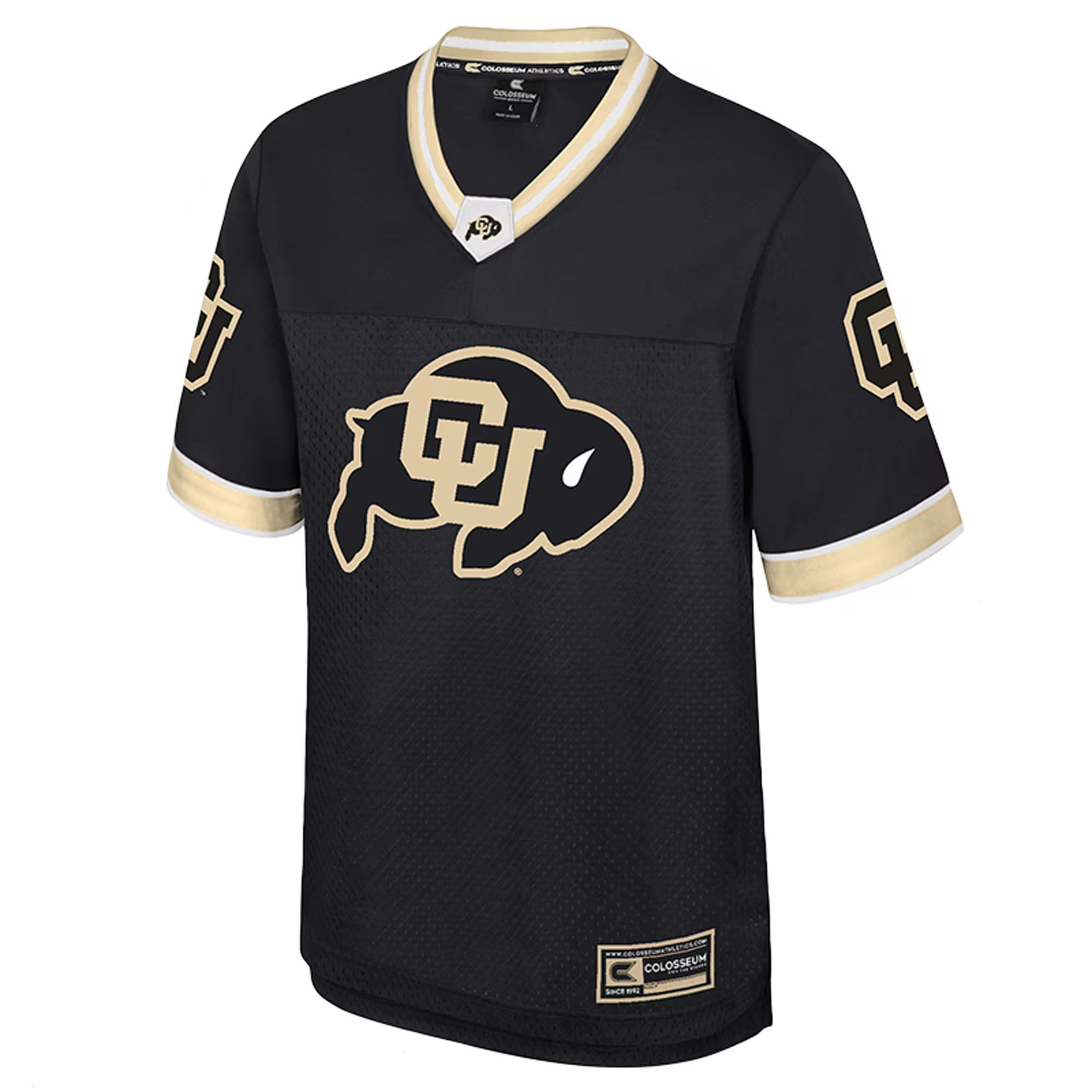Show your unwavering support for the Colorado Buffaloes with this Nothing But The Hits Football Jersey from Colosseum. With a roomy fit designed for movement and layering over a sweatshirt, this jersey is perfect for your favorite fall Saturdays or even just casual wear. The team logo and graphics printed on the chest and sleeves showcase your Colorado Buffaloes pride in bold style.