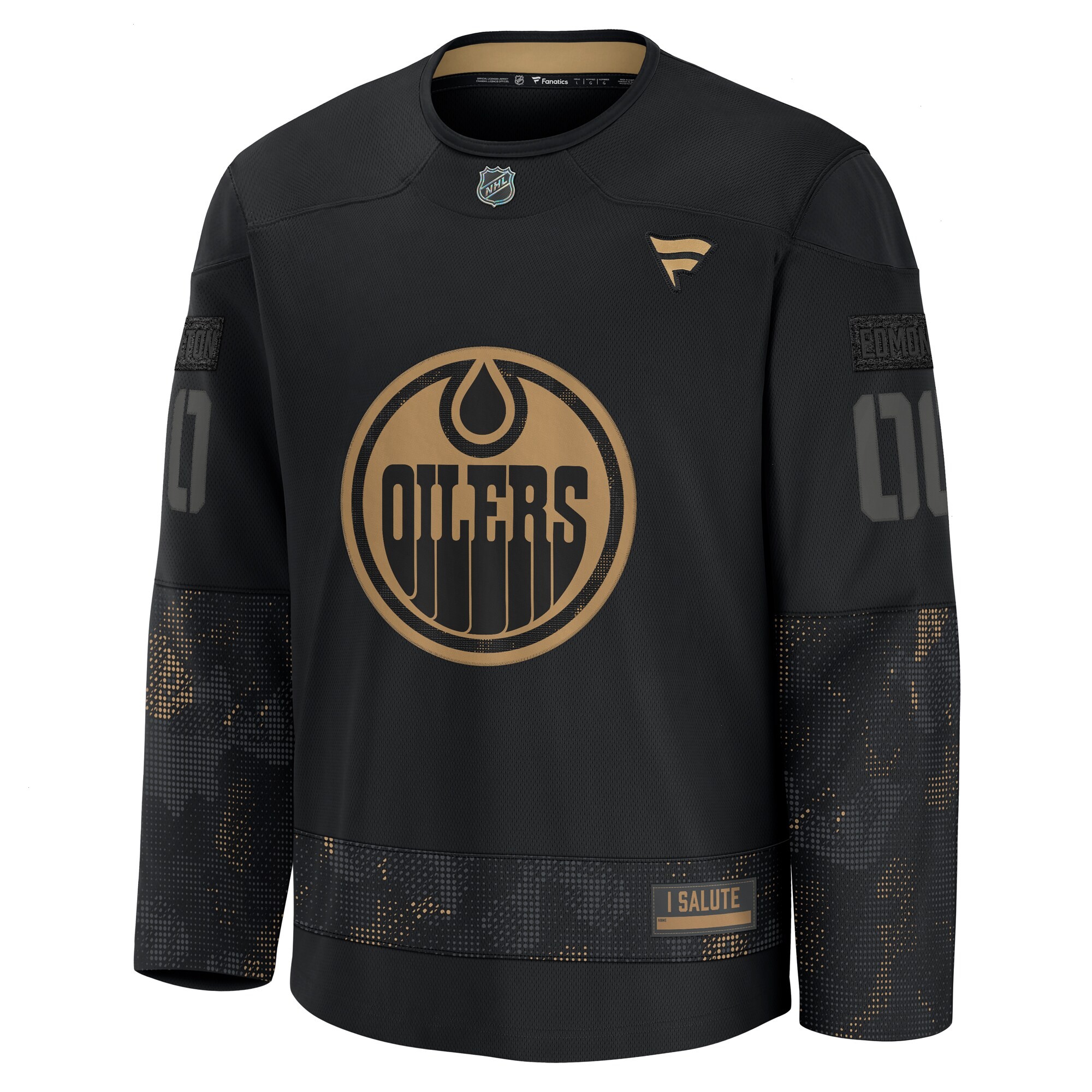 Men’s Edmonton Oilers Fanatics Black 2024 Military Appreciation Personalized Long Sleeve Practice Jersey