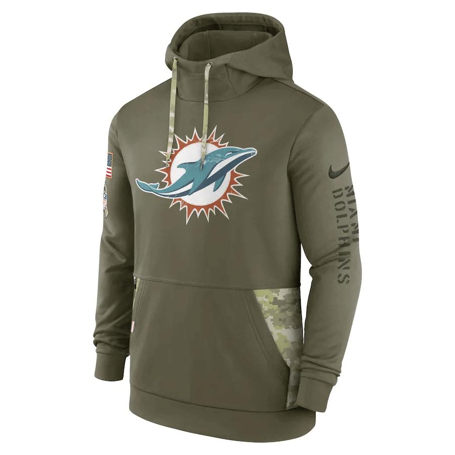 Miami Dolphins 2022 Salute to Service Therma Performance Pullover Men Hoodie – Olive