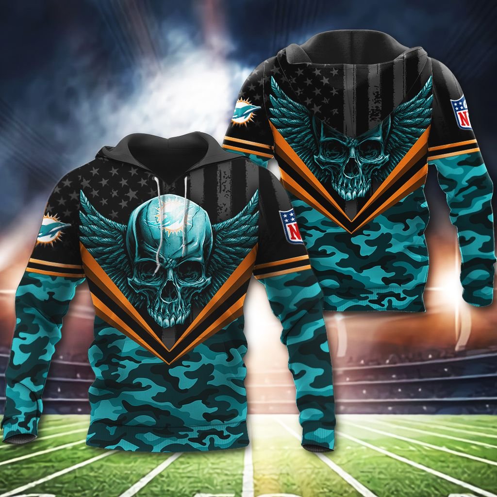 Miami Dolphins Skull Wings 3D Hoodie Zip Hoodie, Nfl 3D All Over Print Hoodie Zip Hoodie