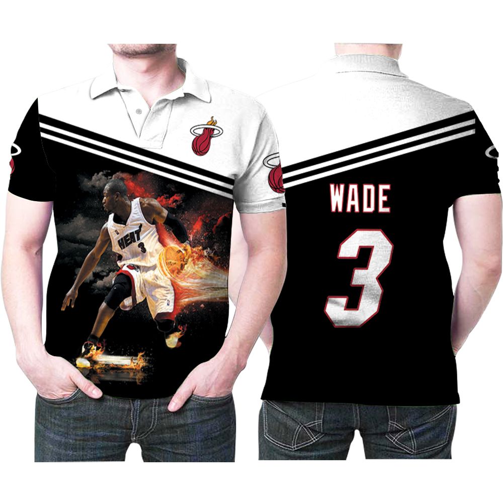 Miami Heat Dwyane Wade 3 Nba Legend Basketball Dribbling Skill Fire 3d Designed Allover Gift For Heat Fans Polo Shirt All Over Print Shirt 3d T-shirt
