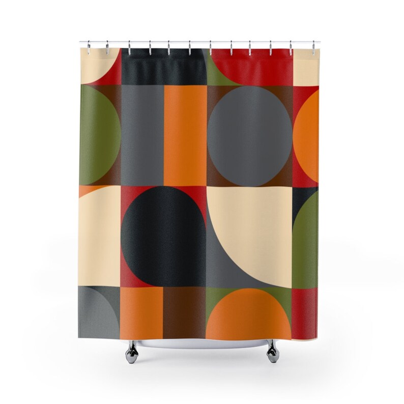 Mid Century Modern Curtain Mcm Geometric Abstract Retro Red, Gray, Black, Mustard Yellow-Orange, Brown, Green Shower Curtain