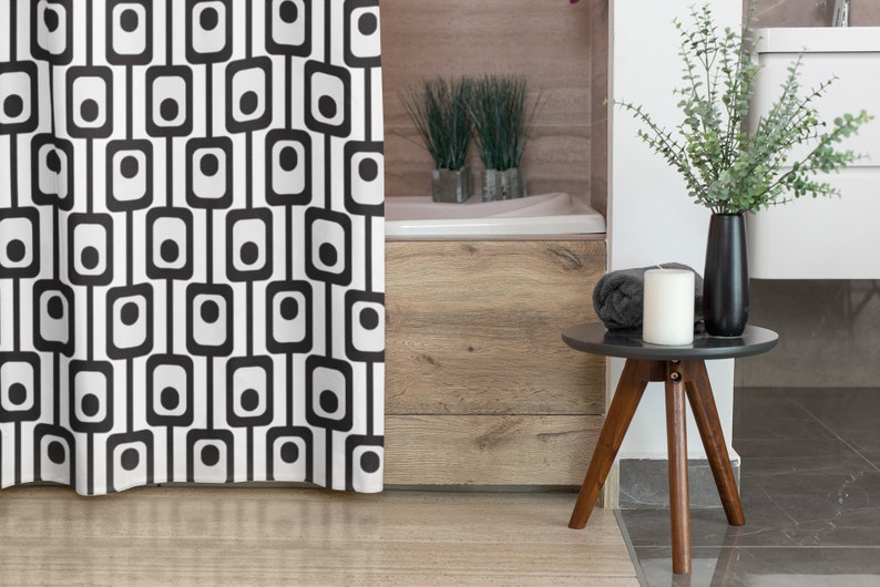Mid Century Modern Shower Curtain Home Decor, Mcm Shower Accessory, Retro Bathroom Curtain