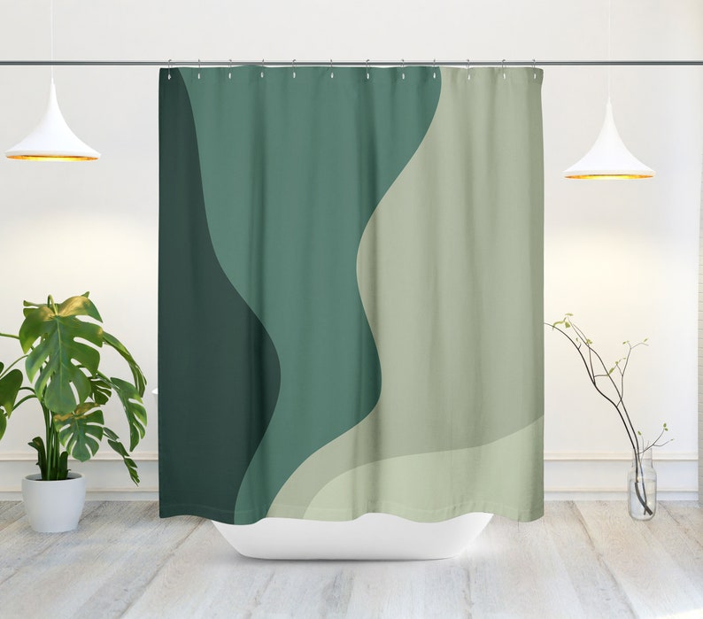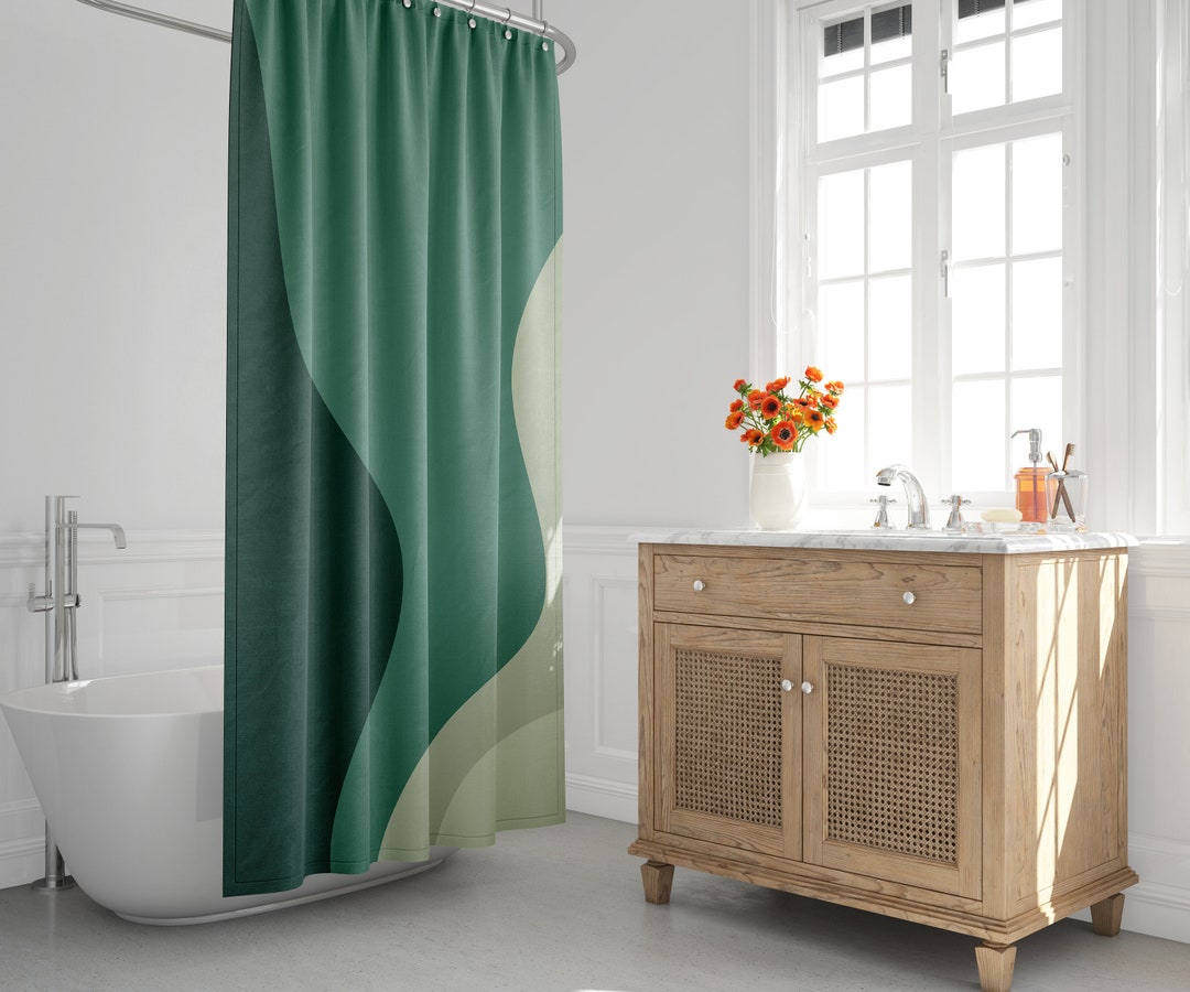 Mid-Century Modern Shower Curtain, Minimalist Bath Curtain