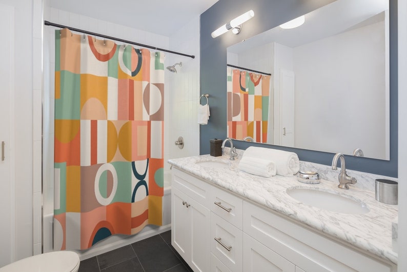 Mid Century Modern Shower Curtains, Mcm Shower Accessory, Retro Bathroom Curtain Home Decor