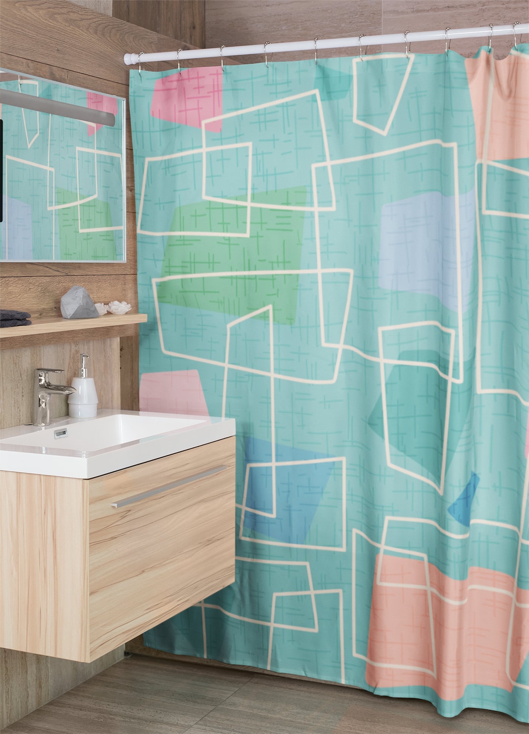 Mid Century Modern Shower Curtains, Mcm Shower Accessory, Retro Bathroom Curtain, Tub Curtain, Retro Shower Curtain
