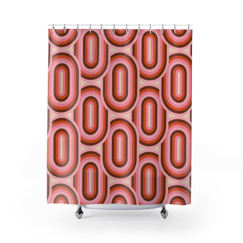 Mid Century Shower Curtain, Modern Abstract Geometric Bath Curtain, Eames Retro 6 7 Bathroom Decor, Hippie Gift