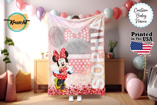 Minnie Mouse Cartoon Custom Name Blanket, Personalized Blanket, Personalized Gifts, Cartoon Character Blanket, Gifts For Kid