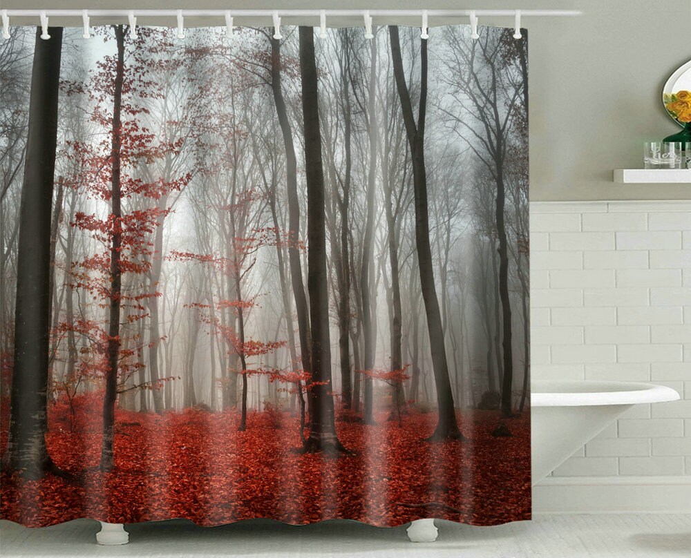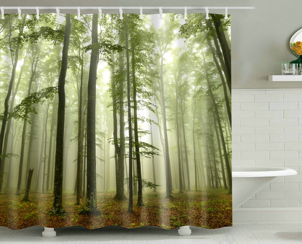 Misty Forest California Redwood Trees Bathroom Shower Curtain – Waterproof Fabric