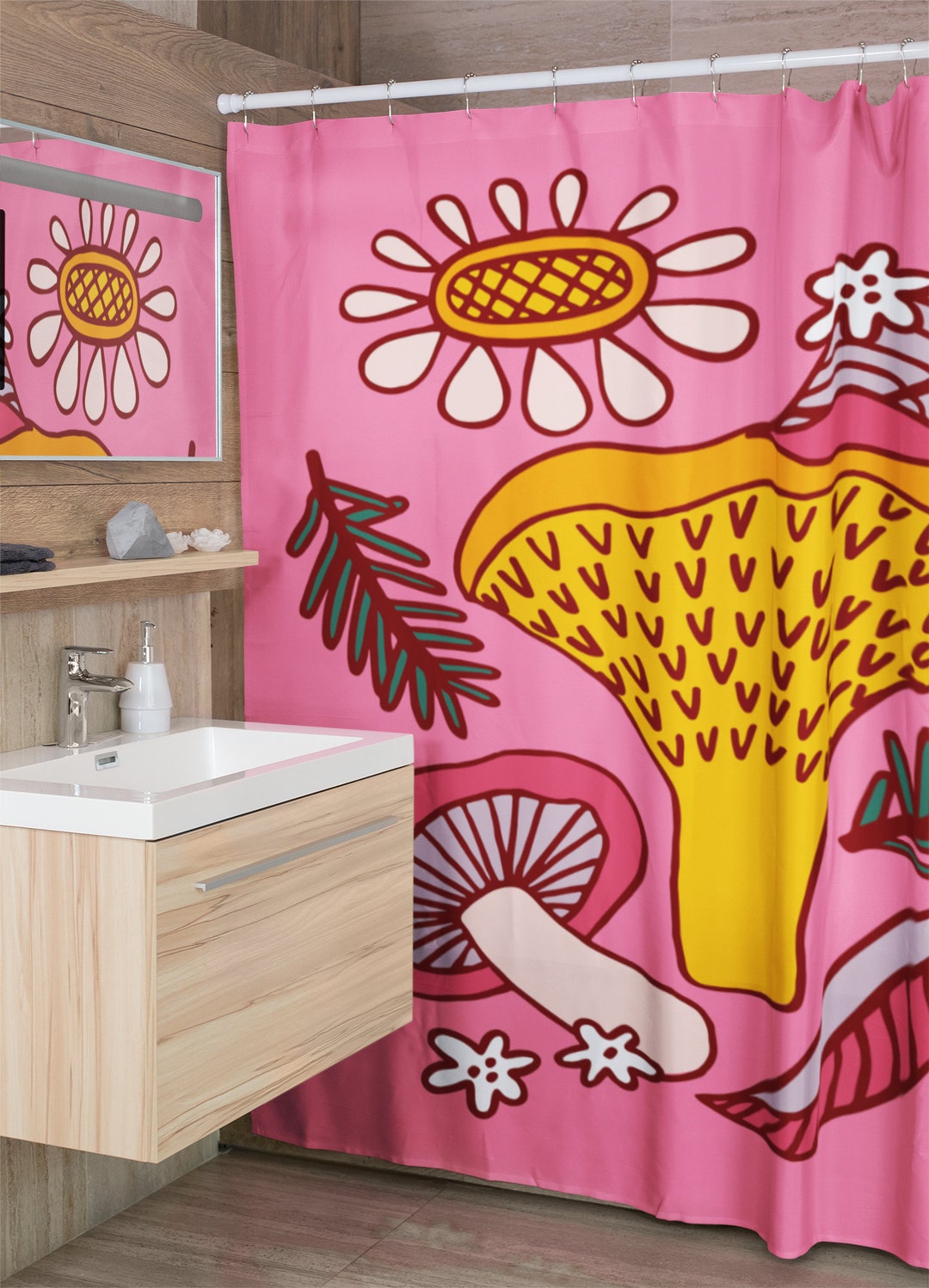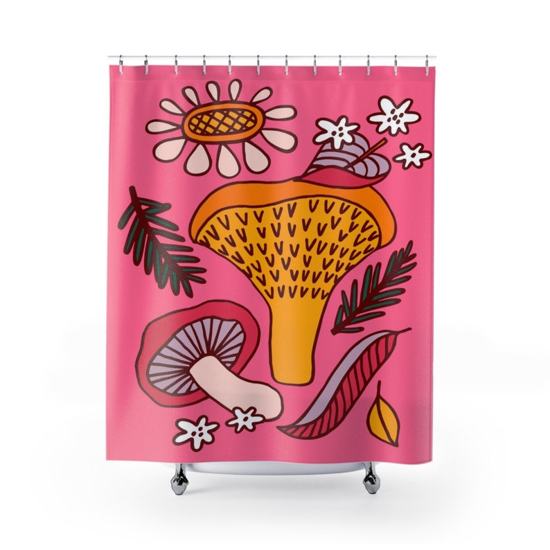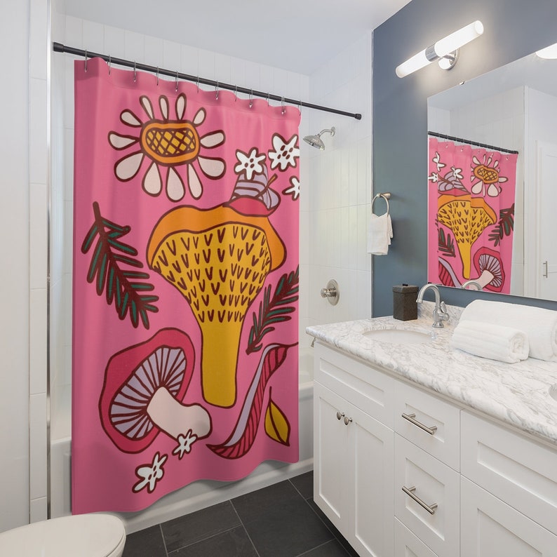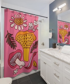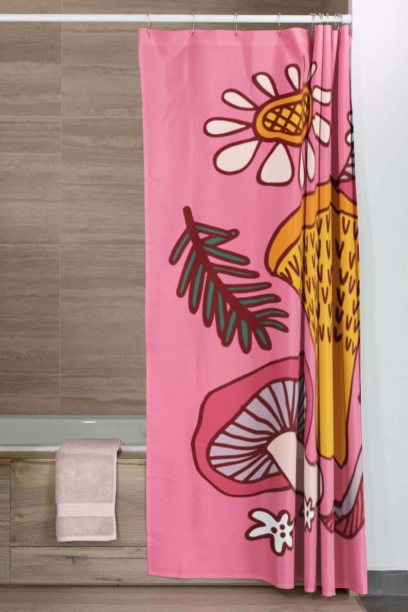 Mushroom Shower Curtain, Groovy 60’s 70’s Hippie Shower Accessory, Mushroom Mid Century Modern Shower Curtain