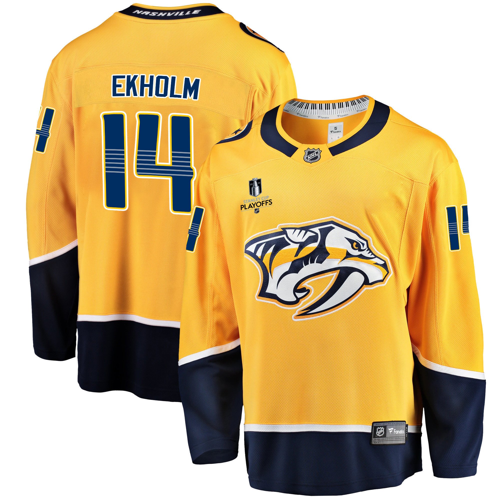 Nashville Predators Mattias Ekholm 14 Home 2022 Stanley Cup Playoffs Breakaway Men Jersey – Gold