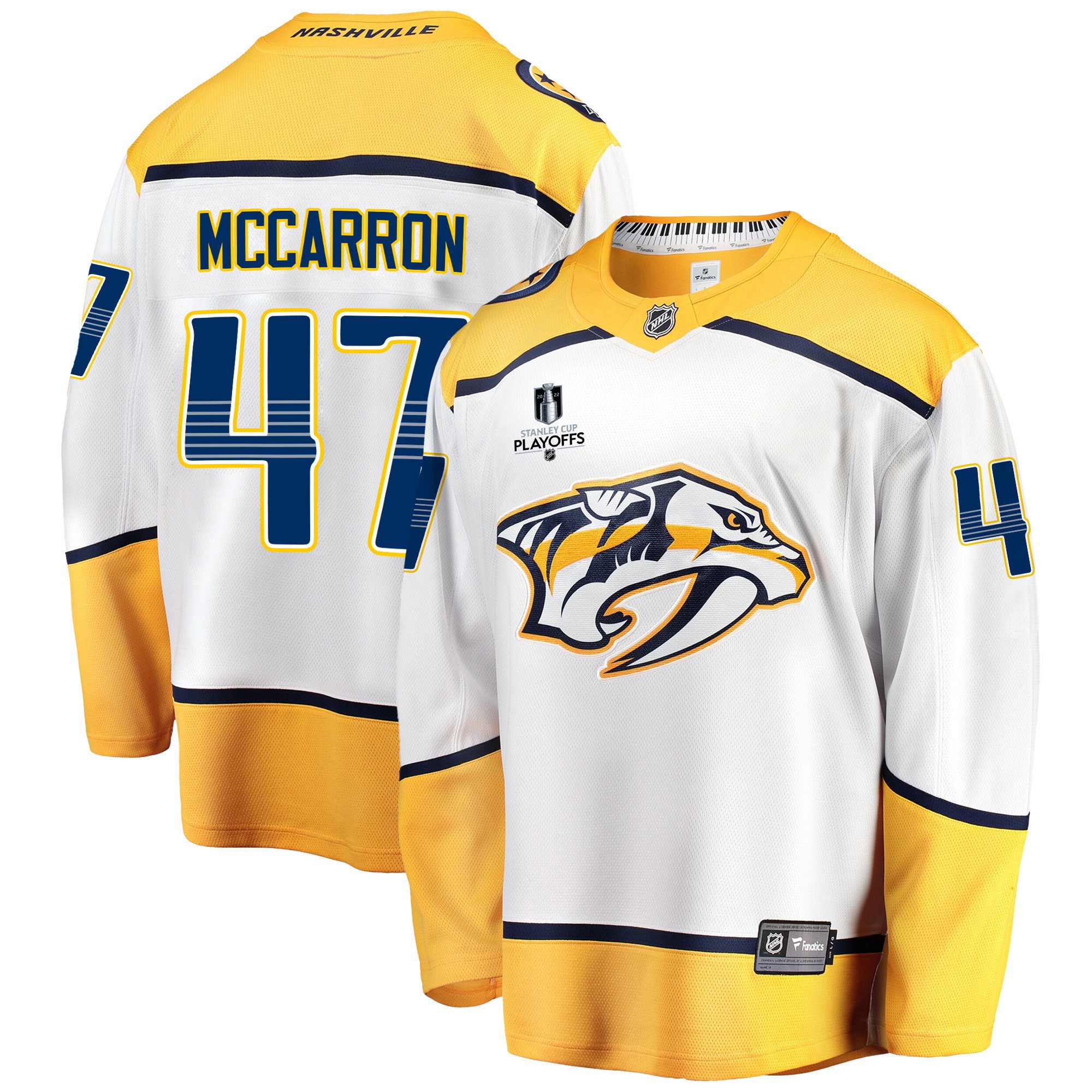 Nashville Predators Michael McCarron 47 Away 2022 Stanley Cup Playoffs Breakaway Men Jersey – White